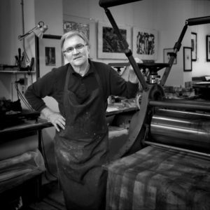 Urbinate di nascita, Corrado Albicocco negli anni Settanta si trasferisce per insegnare a Udine. Dal 1994, la Stamperia d’Arte Albicocco in via Ermes Colloredo è un punto di riferimento per la stampa di opere incise. Nella “bottega” di Corrado transitano i più importanti maestri dell’arte incisa italiani e stranieri: solo per citarne alcuni, Giuseppe Zigaina, Emilio Vedova, Piero Guccione… La Stamperia si distingue, inoltre, per le mostre che ospita come galleria e per la cura di raffinati libri d’artista.