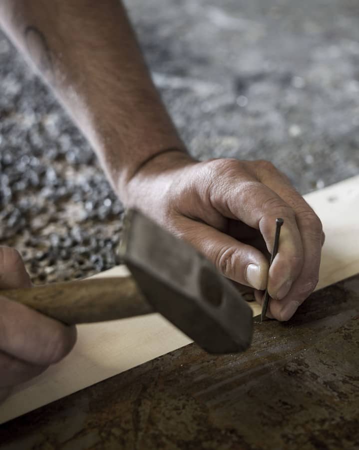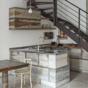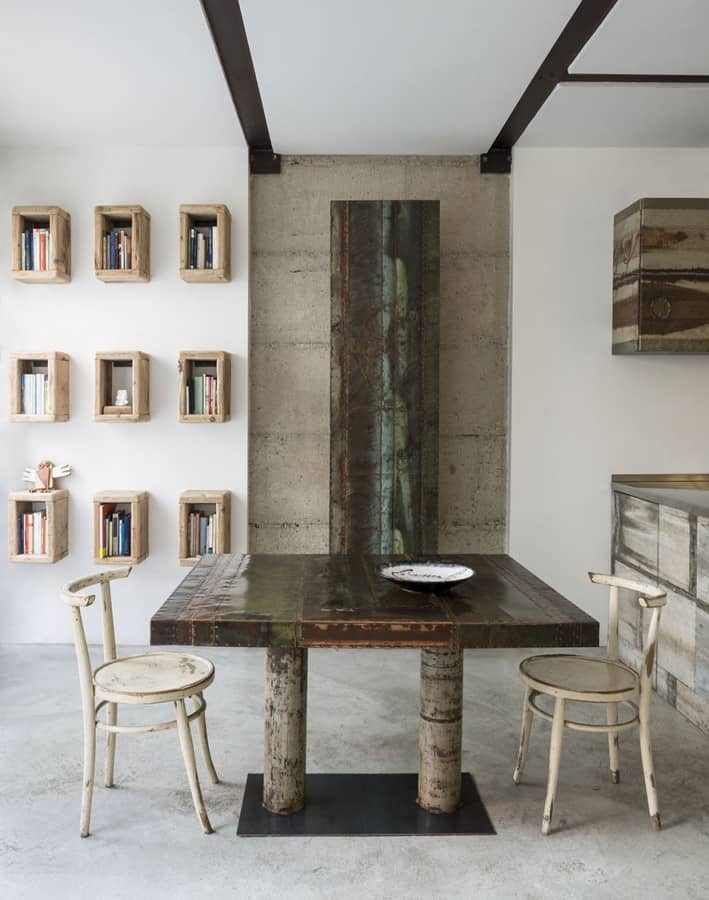 Materiali rovinati e consumati vengono riassemblati in questo laboratorio per dare vita a pezzi unici dal sapore di vissuto. L’irregolarità delle superfici rappresenta originalità e i difetti diventano valore.