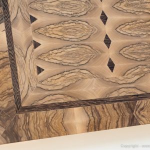 Originario di un piccolo paese della Puglia, Antonio Russo comincia da giovanissimo a lavorare in un piccolo laboratorio del legno nel bergamasco. Torna poi nel paese natale per aprire la sua bottega, che va avanti da oltre 40 anni. Da qualche anno l’ebanista si è specializzato nella lavorazione dell’ulivo, un amore nato per caso una sera, come una folgorazione, osservando un tronco di ulivo bruciare nel camino. Questo materiale, che Antonio ritiene avere un’anima, richiede una lavorazione particolare, data dal taglio trasversale, invece che orizzontale come altri tipi di legno. Nel suo laboratorio realizza anche elementi a intarsio, come scacchiere, cornici e pannelli ornamentali, dove le venature dell’ulivo si intrecciano con le figure geometriche dei motivi decorativi.