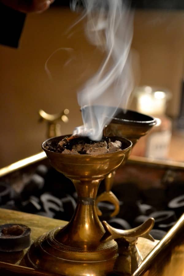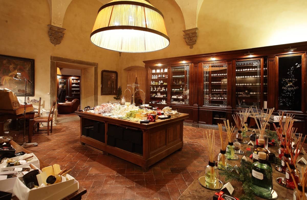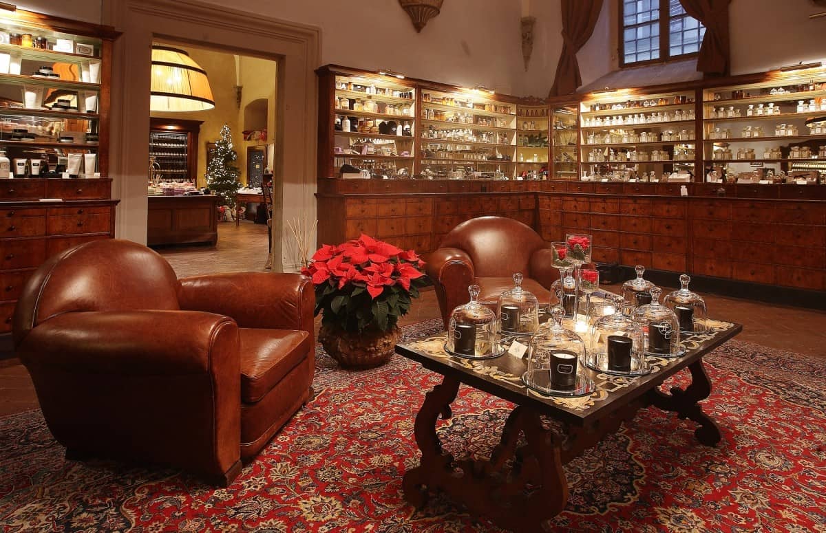Nel Salotto delle Essenze, su eleganti scaffali di legno, sono conservate più di 1500 essenze odorose, che rievocano ricordi e sogni di terre lontane: la rosa di Taif, il sandalo di Mysore, iris fiorentino, incensi dell’Oman, …