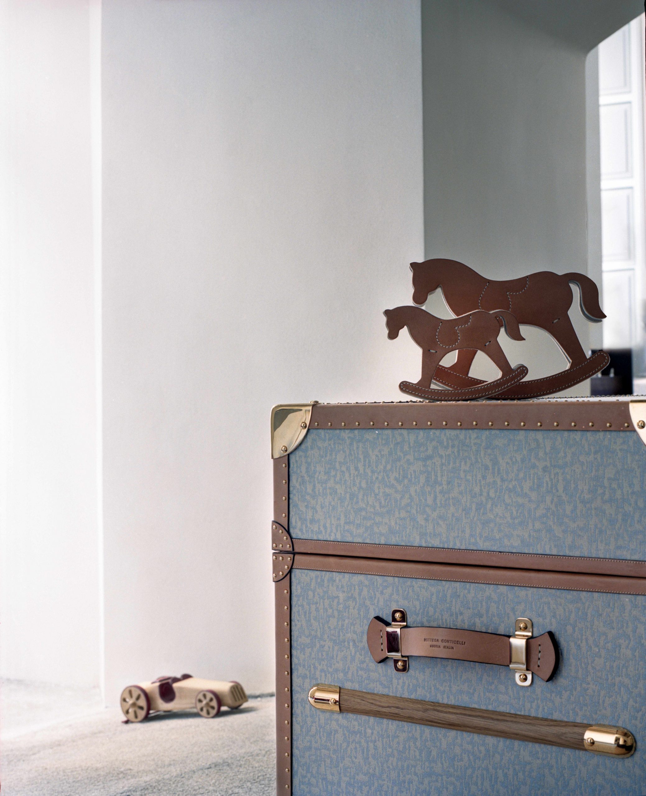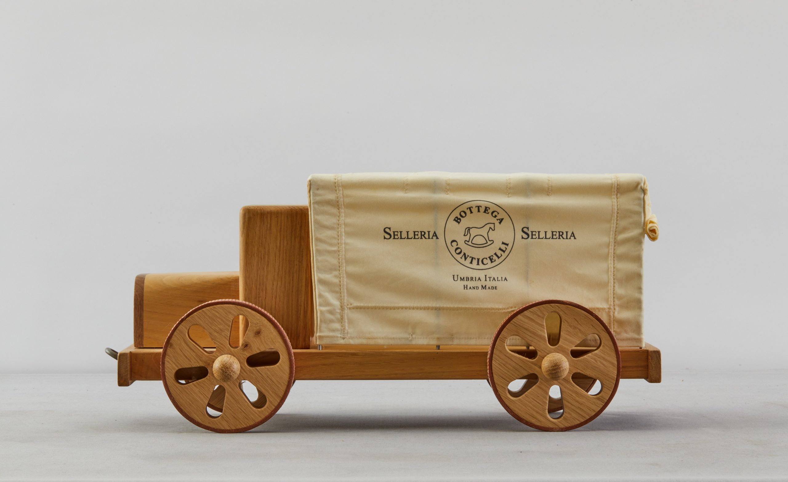 Bottega Conticelli è particolarmente nota per la lavorazione della pelle, ma tecniche e materiali e padroneggiati dal Maestro sono in realtà numerosi: cuoio vegetale, legno, lana, ferro e iuta sono trasformati in accessori, arredi, rivestimenti per biciclette e scooter, ma anche in altri oggetti realizzati su misura per i clienti internazionali della Bottega, tra cui importanti marchi del lusso. Tutte le creazioni sono uniche, frutto di una ricerca che unisce estetica, funzione e legame con il territorio, ma anche una ludica semplicità che le rende immediatamente riconoscibili.