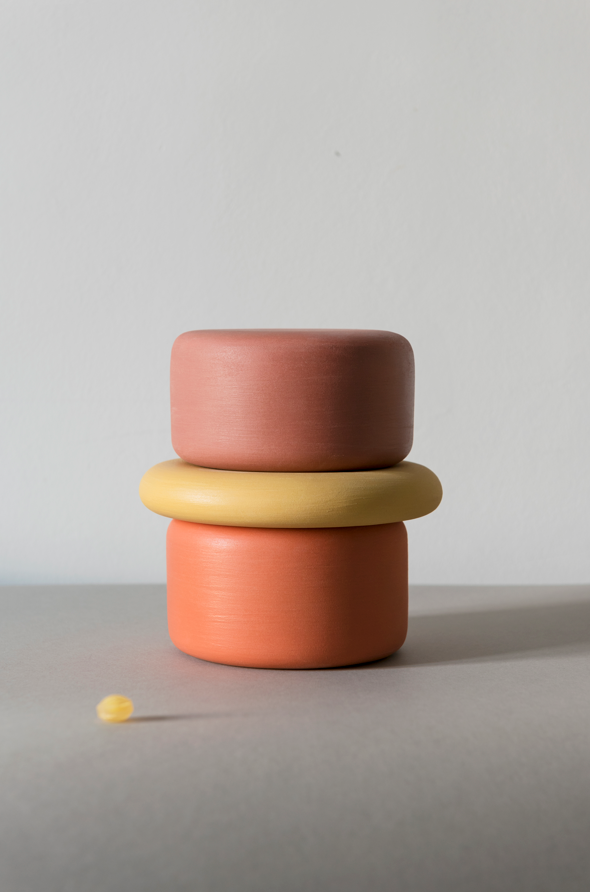 Ogni pezzo è interamente progettato, modellato e rifinito artigianalmente nel suo studio, dove Cecilia lavora con terre a bassa e alta temperatura, dalla terraglia bianca alla porcellana, utilizzando diverse tecniche: colaggio, modellazione a mano e tornio. Tutto il suo lavoro è sorretto da una costante attività di ricerca e sperimentazione che ha l’obiettivo di creare oggetti che uniscano forma, equilibrio e presenza materica.