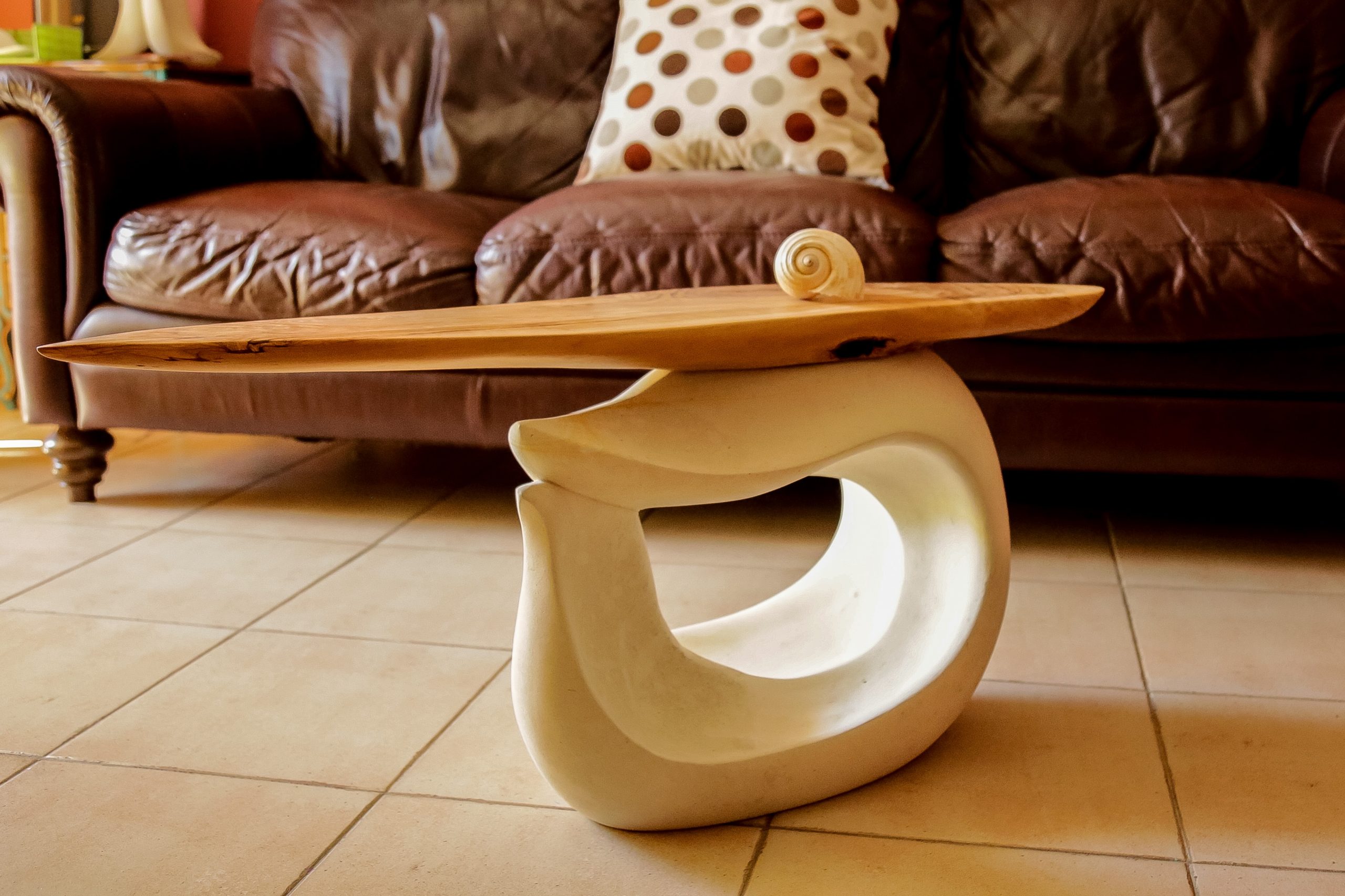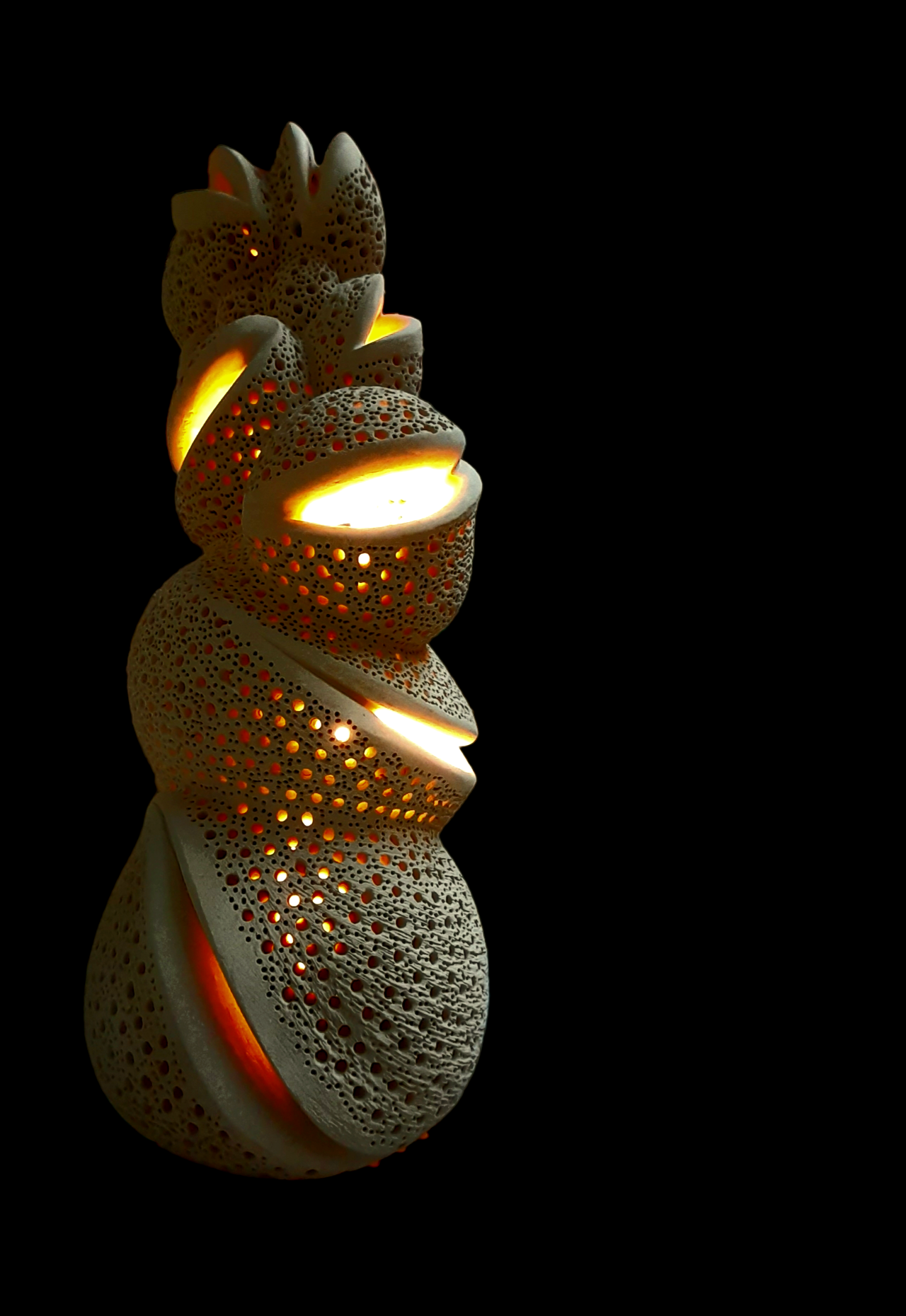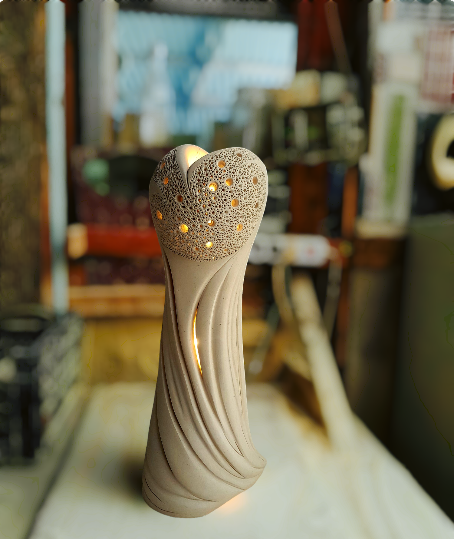 L’ispirazione viene dalla natura: le forme sinuose riprendono gli alberi d’ulivo, gli scogli scolpiti dal mare e i fossili marini del paesaggio salentino. Partendo da un blocco di pietra e da un’idea, la materia viene lavorata impiegando le tecniche e gli strumenti della tradizione artigiana, ma i motivi barocchi delle architetture leccesi vengono reinterpretati in senso decisamente moderno: il risultato sono oggetti e opere che valorizzano gli interni creando giochi di luce e atmosfere calde e avvolgenti, adatti ad ambienti sia classici che moderni.