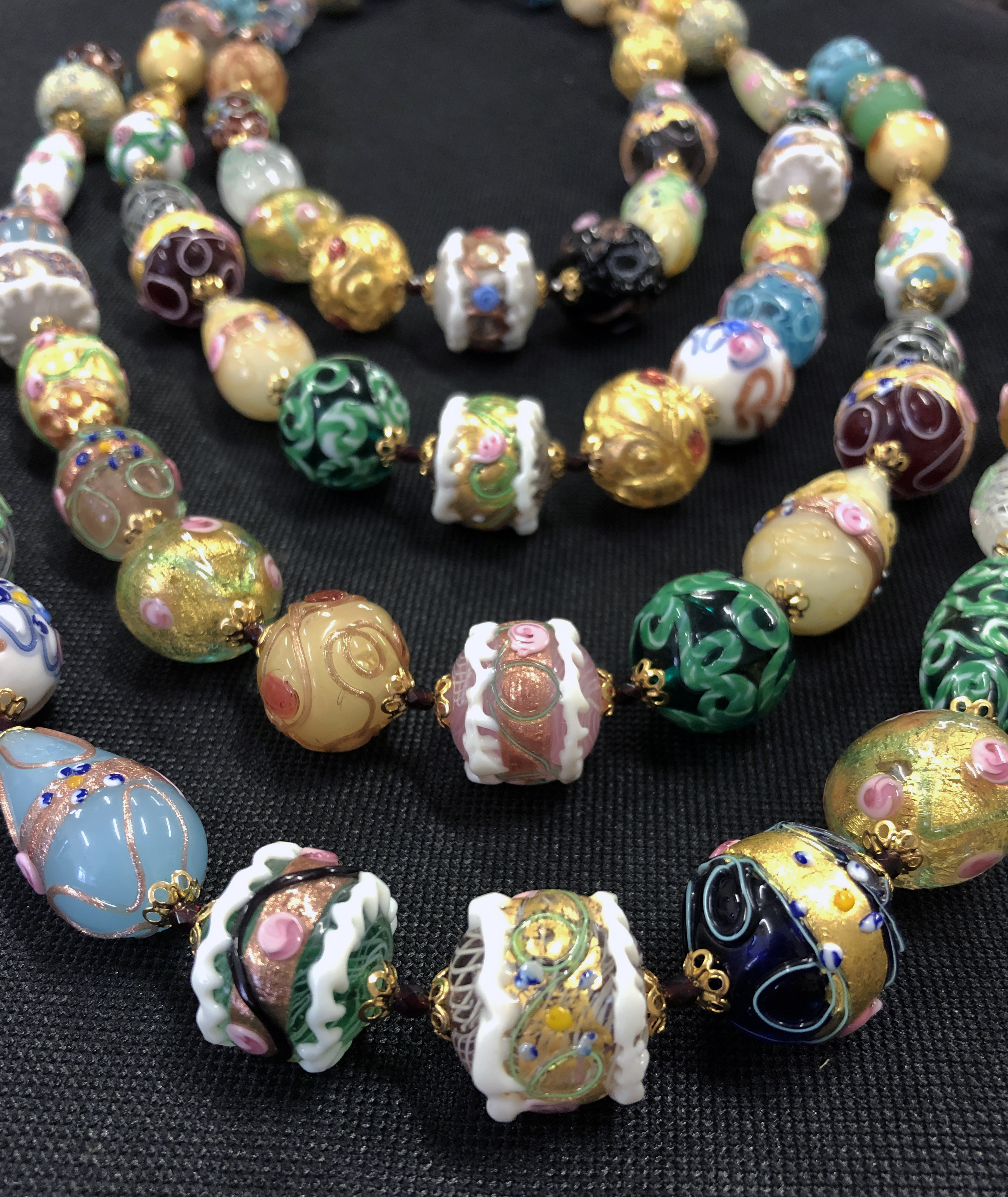 Gioielli che sembrano opere d’arte per la loro eleganza e originalità. Interamente fatti a mano da Renata, questi gioielli rispecchiano in pieno quella che è la passione e la dedizione per la lavorazione del vetro di Murano.