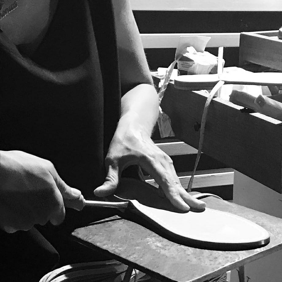 Apprende il mestiere in bottega, lavorando tra Capri e Formentera, e apre finalmente la sua attività nel 2012 a Portici, nei pressi di Napoli. Nel laboratorio della sua città oggi disegna e realizza le tipiche calzature, interamente a mano e in vera pelle con materiali certificati Made in Italy, in tutte le loro varianti. Il cliente può scegliere tra i prodotti di un’ampia collezione oppure farsi realizzare un sandalo su richiesta, per esprimere al massimo il suo gusto e la sua individualità.