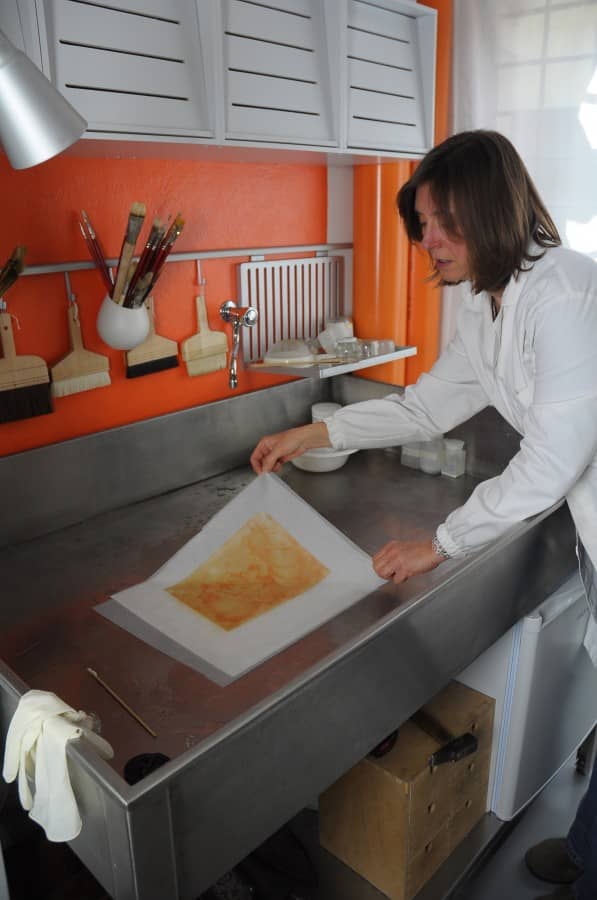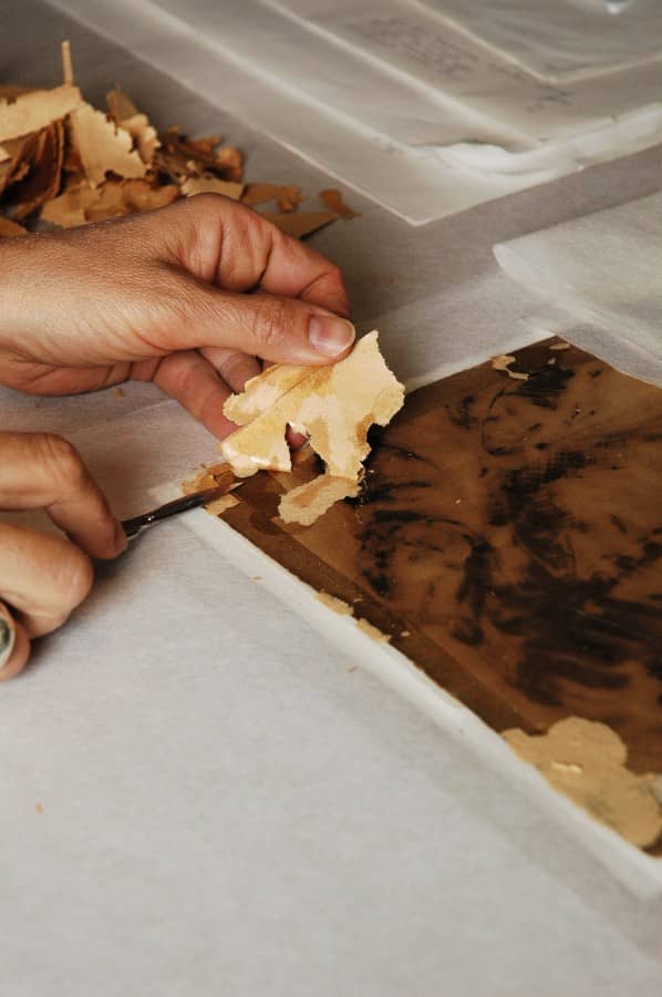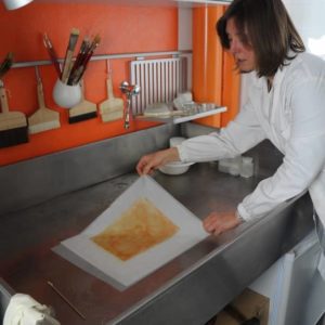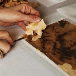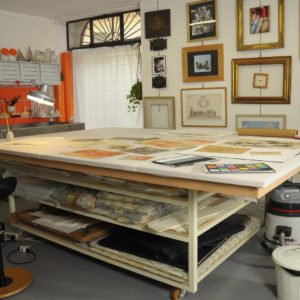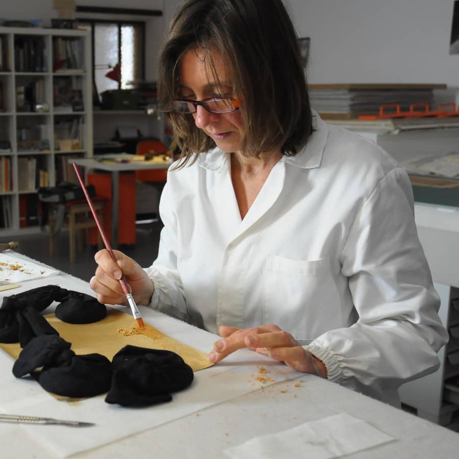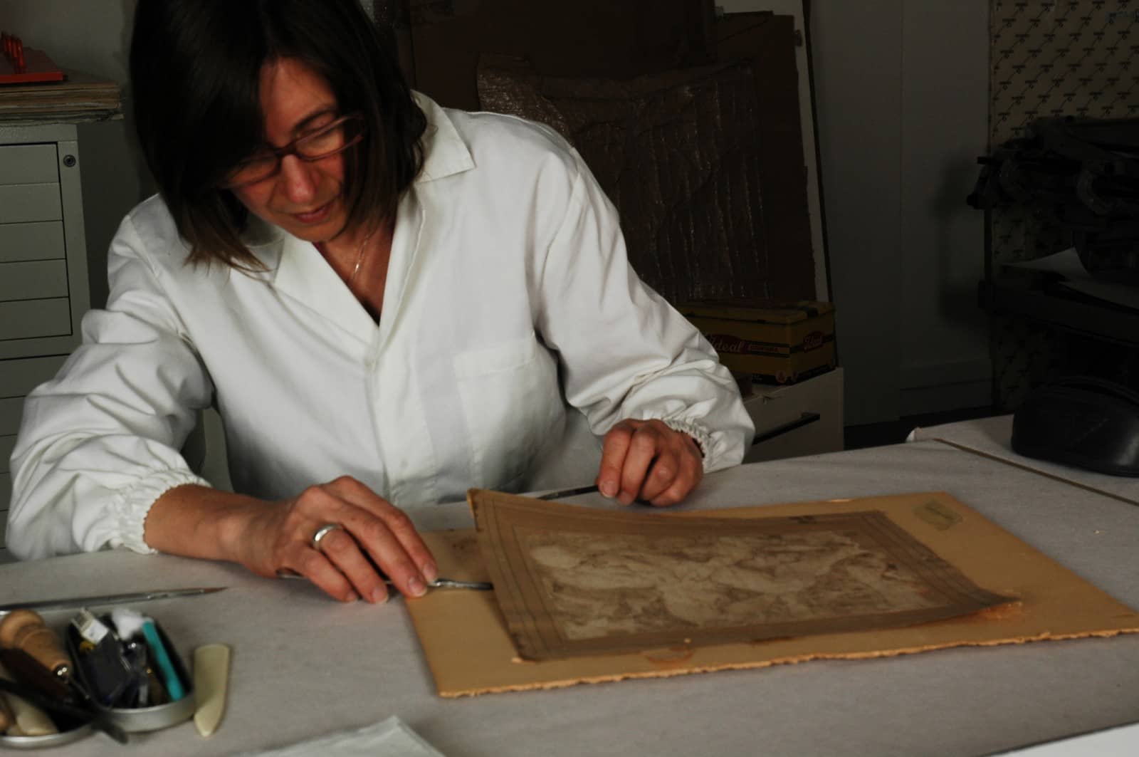 Con competenza e attenzione, è in grado di intervenire su disegni, dipinti su carta, mappe antiche, manifesti, documenti e anche opere orientali. Inoltre, restaura opere tridimensionali come mappamondi, modellini architettonici, ventagli, opere in cartapesta e oggetti realizzati in carta. Affronta anche interventi su grandi formati, come Papier Peint o scenografie e silhouette teatrali. Oltre ai servizi di restauro, esegue consulenze sullo stato di conservazione delle opere e svolge piani di manutenzione su misura.