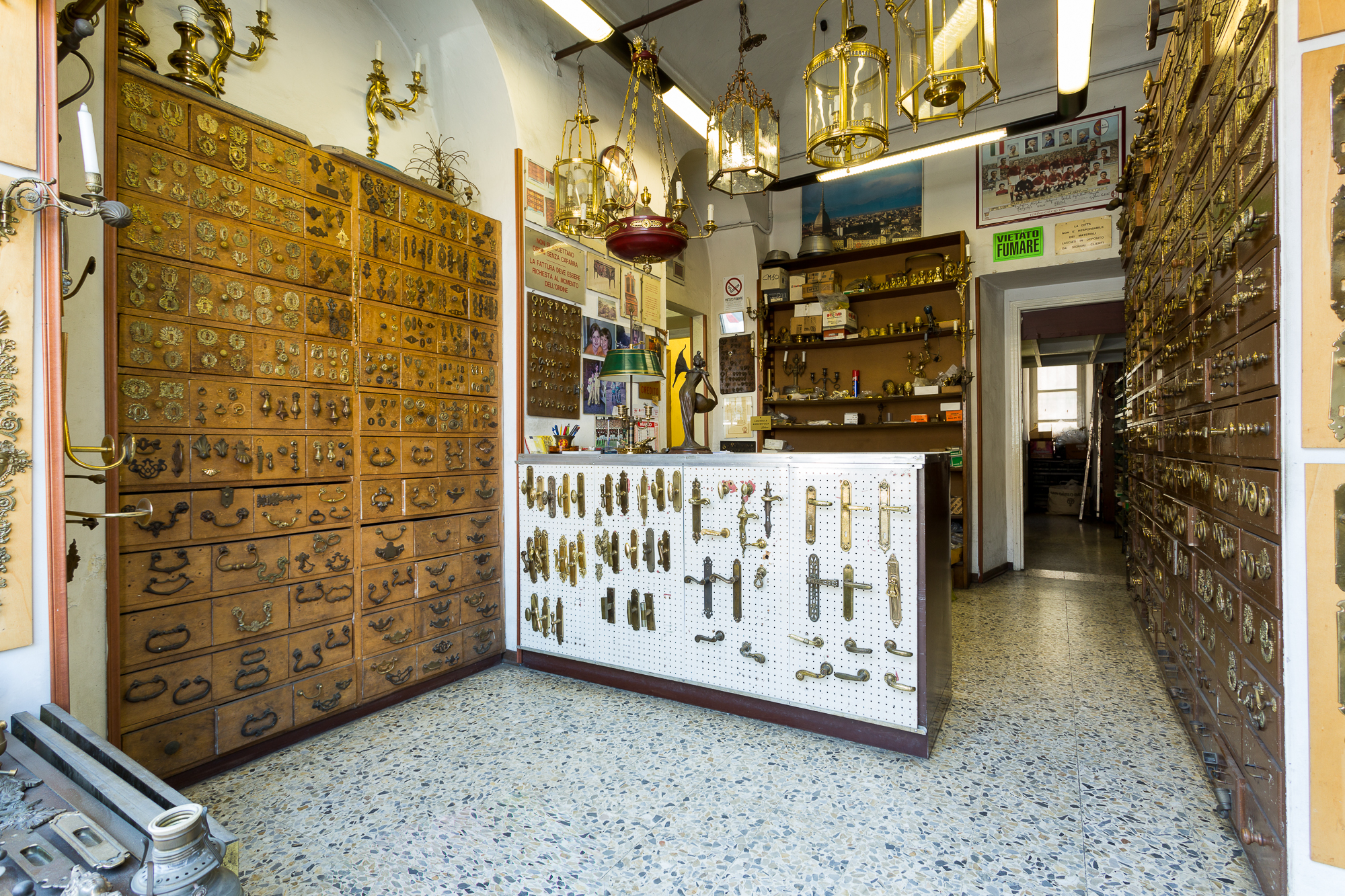Luciano Lesa inizia giovanissimo a lavorare come garzone nel laboratorio di un bronzista, quasi per caso, innamorandosi di una professione che non abbandonerà più. Oggi nell’atelier di Torino si realizzano interventi di riparazione e restauro, ma anche riproduzioni di borchie antiche, fregi o guarnizioni per mobili d’epoca. La bottega di Luciano è un luogo suggestivo e affascinante, dove il tempo sembra essersi fermato: si trovano, o si chiedono su commissione, complementi di arredo, accessori e finiture per mobili, mentre attrezzi e orpelli di ogni genere sono riposti secondo una classificazione e un gusto che richiama l’Europa settecentesca. Oggi Luciano è affiancato dai figli Marina e il genero Giovanni, che proseguono una tradizione fatta di tecnica, esperienza e grande abilità manuale.