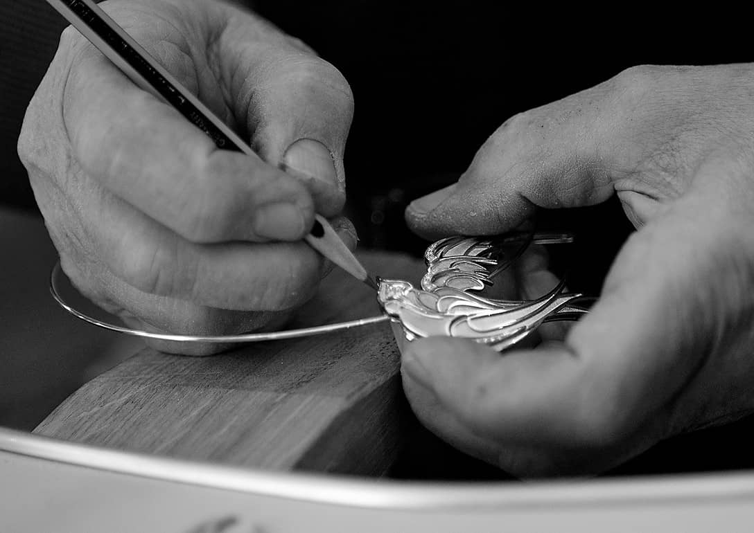 Nel laboratorio orafo a Milano i due fratelli danno vita a prodotti unici, che incantano per la loro eleganza e la loro bellezza. Partendo da un’idea, un’immagine o una fantasia, pregiati gioielli prendono forma interpretando le storie e le emozioni delle persone per cui sono creati.