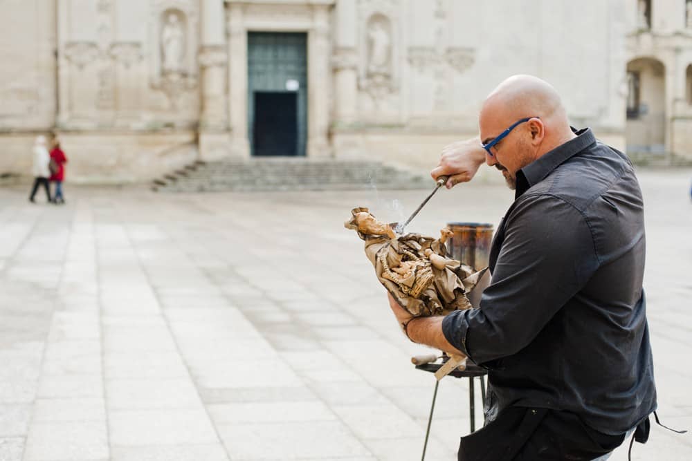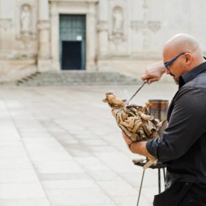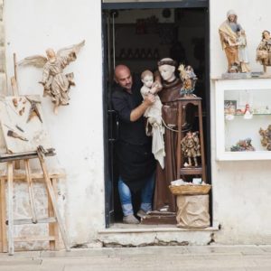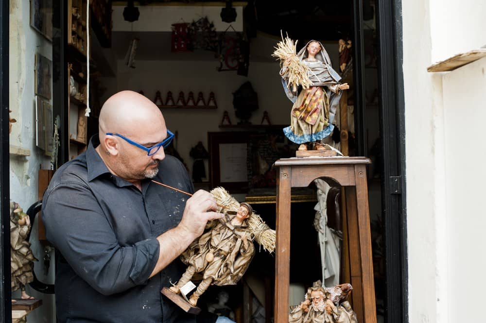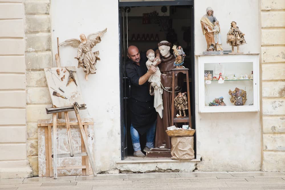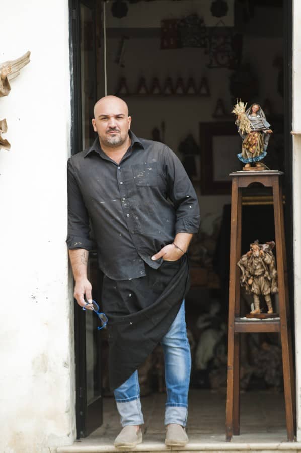 Marco Epicochi è un vero maestro della cartapesta. Nella sua bottega nel pieno centro di Lecce realizza splendide statue sacre di varie dimensioni, fortemente espressive e dallo stile unico. Specializzato in sculture religiose, i suoi soggetti prediletti sono figure di santi, madonne e altri personaggi sacri, anche inseriti in suggestive composizioni, come quella tradizionale del presepe. Con grande abilità ed estrema cura dei dettagli, Epicochi reinterpreta e fa propria la tradizione della cartapesta leccese, un saper fare che dal XVII secolo dà vita a statuine devozionali dettagliate e realistiche: dei piccoli capolavori da veri prestigiatori della carta.