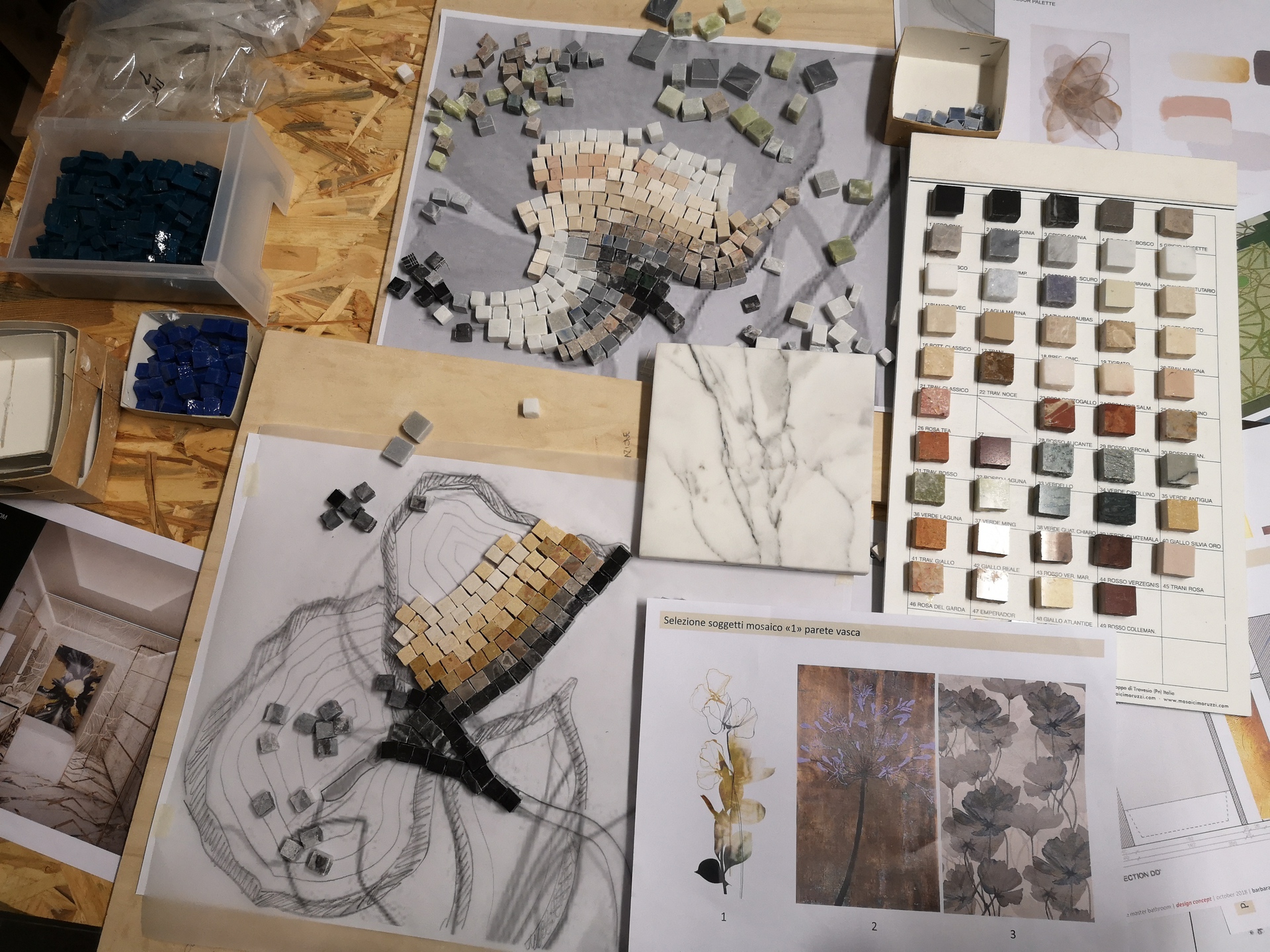 Oggi lavora nel suo atelier a Milano, dove progetta e realizza mosaici per pavimenti, rivestimenti, pannelli decorativi e opere d’arte. La sua esperienza le permette di lavorare sapientemente marmi policromi, smalti, sassi, ceramiche e materiali moderni, per creare opere uniche e personalizzate. Recentemente si è avvicinata al mondo della ceramica artistica, che nel suo processo creativo fonde con l’arte musiva attraverso una visione contemporanea.