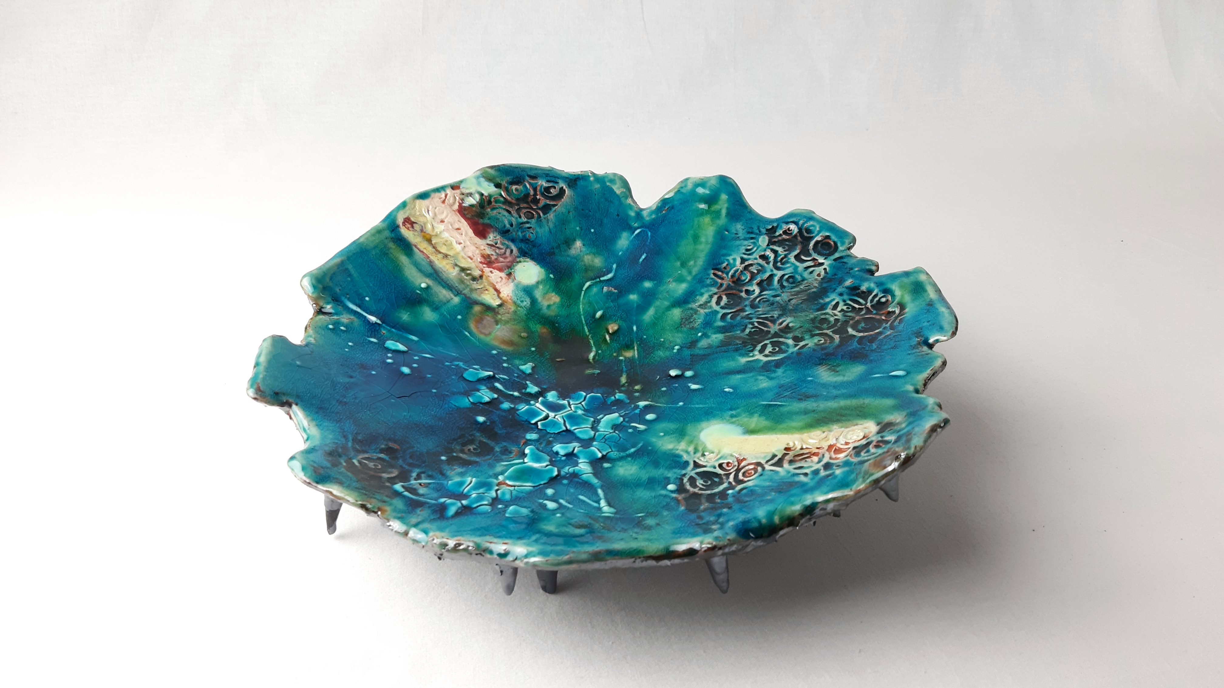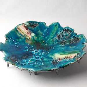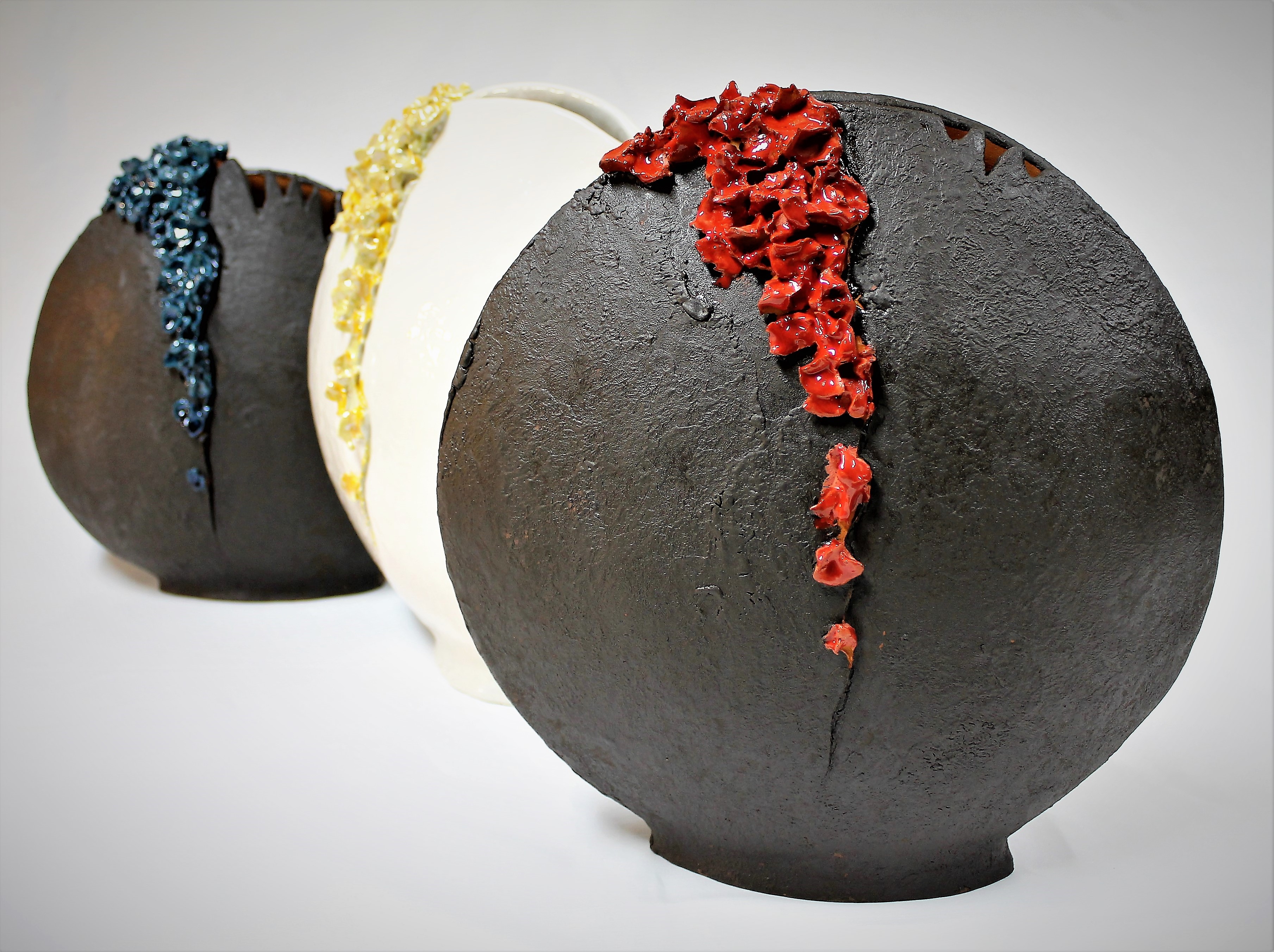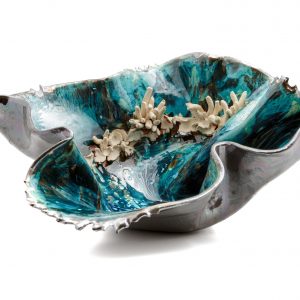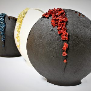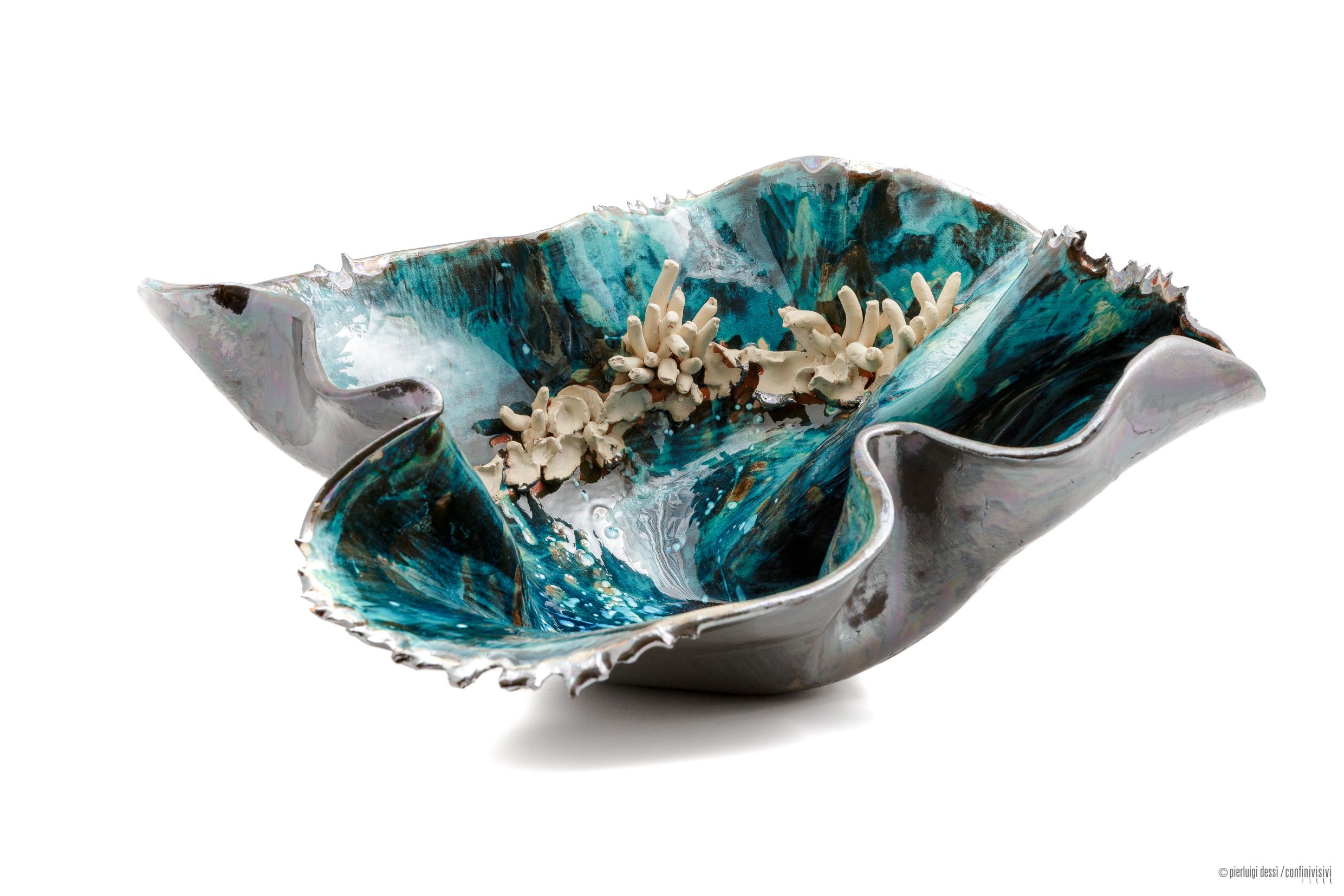 Maria Giuliana Collu è originaria di Assemini, fucina sarda di importanti vasai e ceramisti, nei pressi di Cagliari. Nel laboratorio degli zii, esperti artigiani, apprende le basi della lavorazione dell’argilla. Prosegue la formazione frequentando corsi di ceramica con i migliori maestri, e apre infine il suo laboratorio a Selargius, dove tuttora lavora. L’artigiana realizza complementi di arredo e sculture interamente a mano, utilizzando argille di diverse cromie e smalti di sua composizione. Le sue forme si ispirano ai simboli arcaici e preistorici, ai colori del mare e alle texture della terra e della natura: le linee irregolari sono plasmate d’istinto o ricercate nella geometria. Ha partecipato a fiere e mostre nazionali e internazionali, ricevendo negli anni diversi premi e riconoscimenti.
