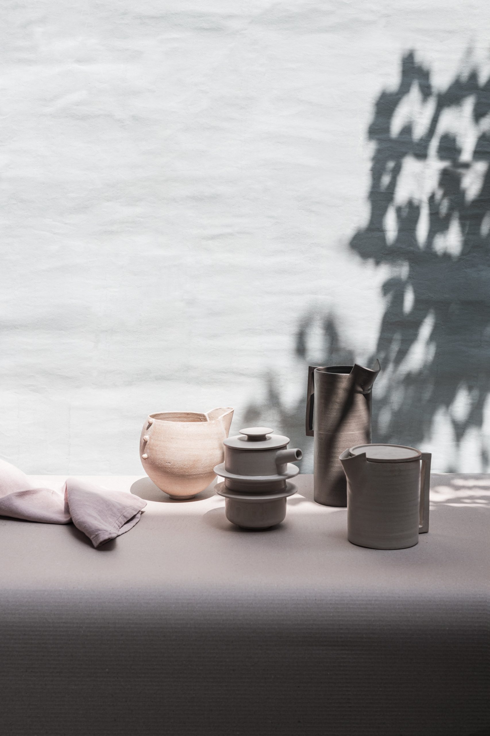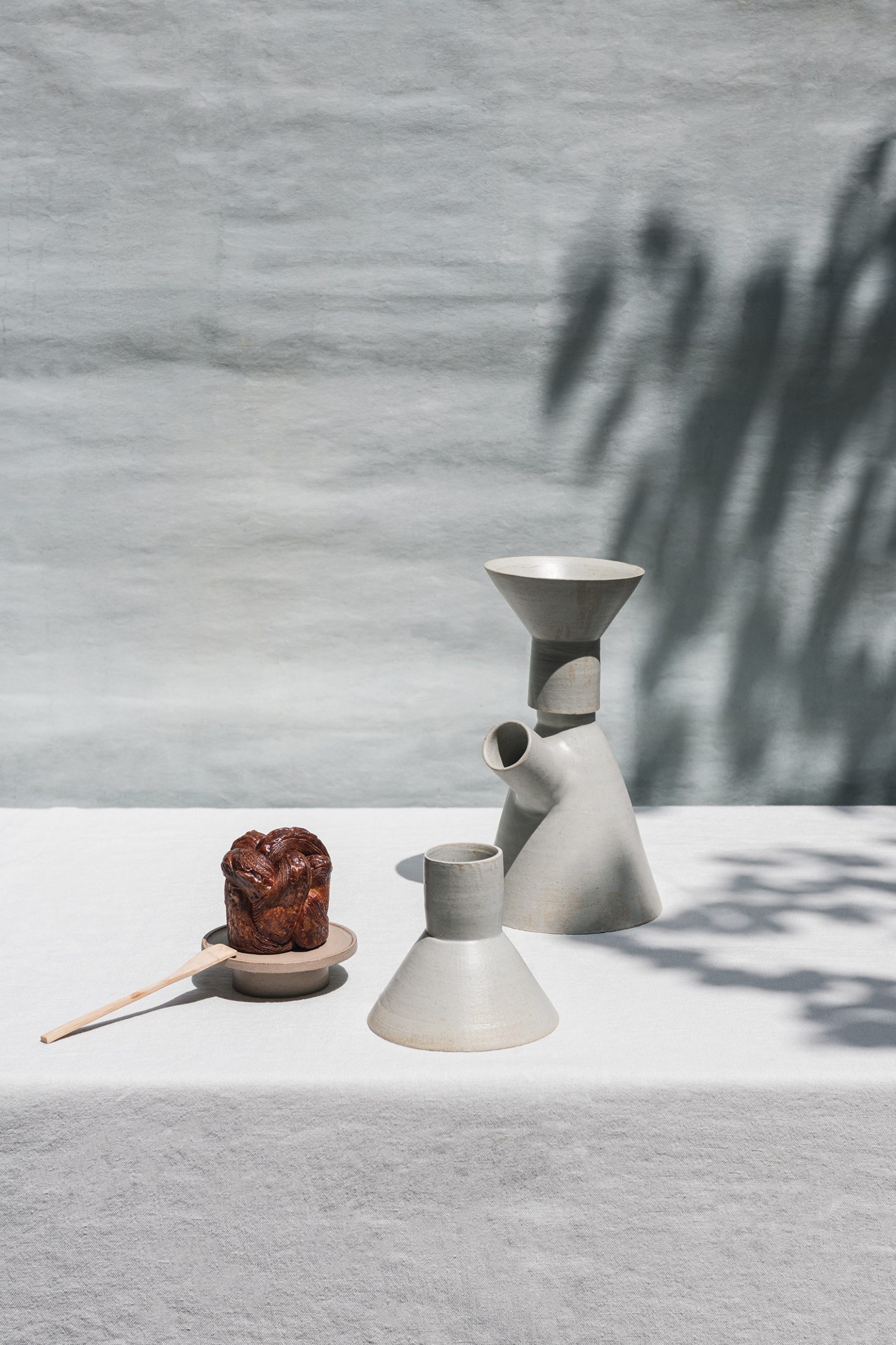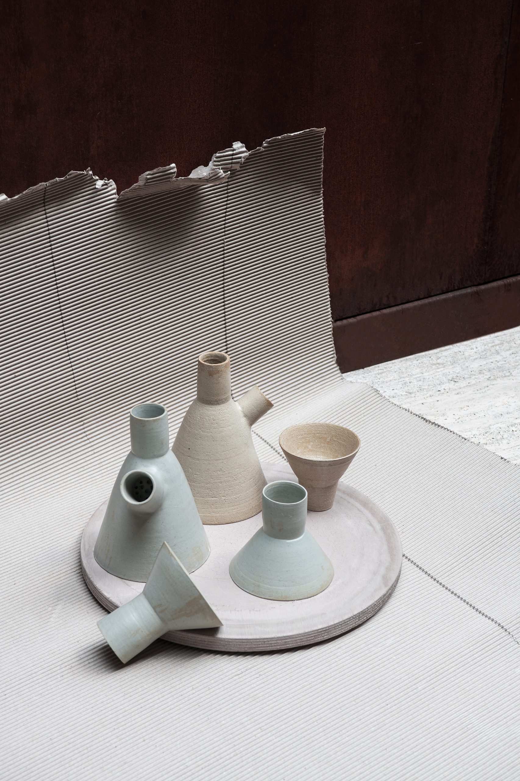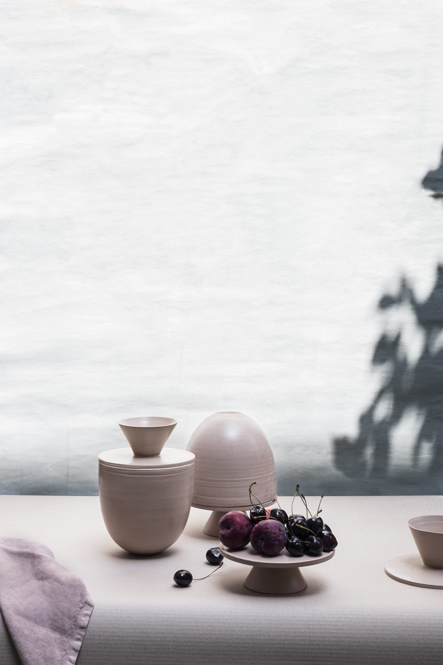 La formazione e la storia professionale di Martina, si manifestano nelle sue creazioni sotto forma di una consapevolezza che si esprime sia nello studio delle linee e delle forme sia nel dialogo di queste con la materia. Già da architetto aveva studiato, mossa dal suo interesse per l’ambiente e dal desiderio di integrare nel suo lavoro anche una dimensione etica, le argille naturali e la terra cruda come soluzione per l’auto-costruzione. Nel mestiere della ceramica, e in particolare nell’uso del tornio, ha trovato la possibilità di coniugare valori etici ed estetici, riscoprendo attraverso il fatto a mano il giusto valore del tempo e delle cose. Il risultato della sua ricerca e del suo lavoro sono oggetti semplici, che possono talvolta dar vita in modo naturale a strutture più complesse, vere e proprie architetture o sculture da tavola, da usare, scomporre e ricomporre.