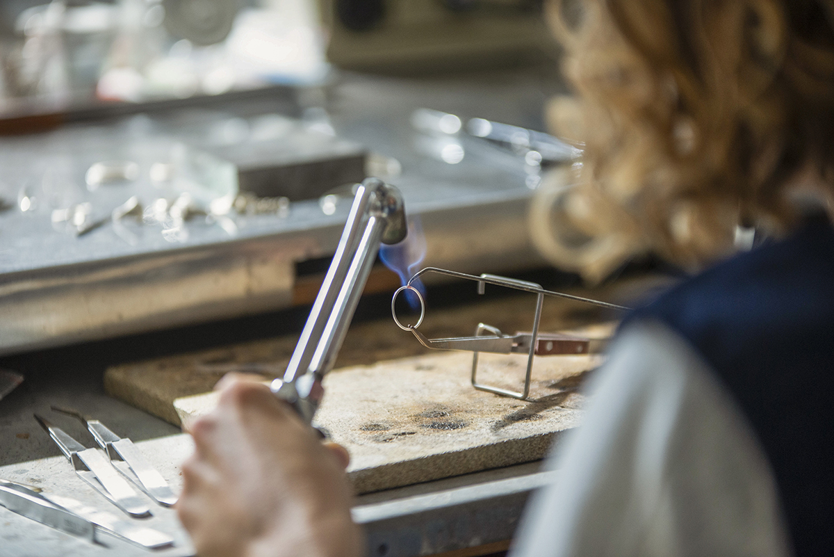 Nel suo atelier orafo di Milano, Monica Candido crea gioielli che nascono dal dialogo tra design e artigianato. Ogni pezzo è realizzato a mano, con tempi lenti e grande attenzione a ogni dettaglio. La sua formazione unisce il rigore del product design, acquisito nel corso dei suoi studi alla Nuova Accademia di Belle Arti di Milano, alla conoscenza delle tecniche orafe apprese alla Scuola Orafa Ambrosiana: oreficeria professionale, anticlastica, riparazione del gioiello e modellazione a cera persa.