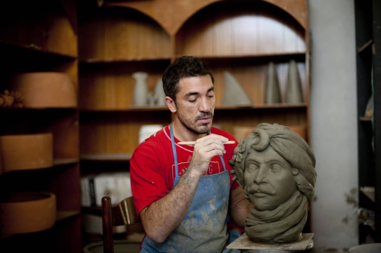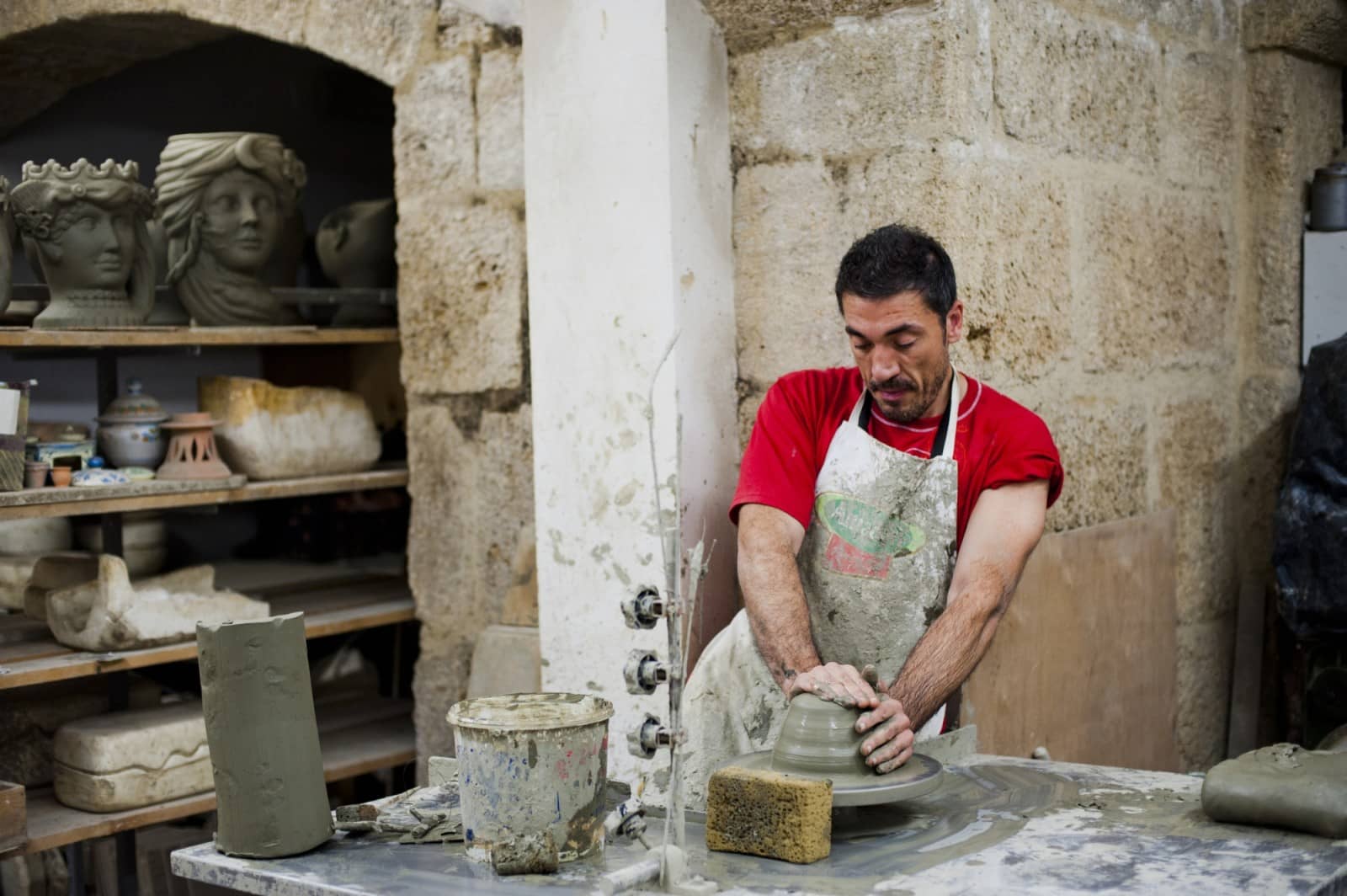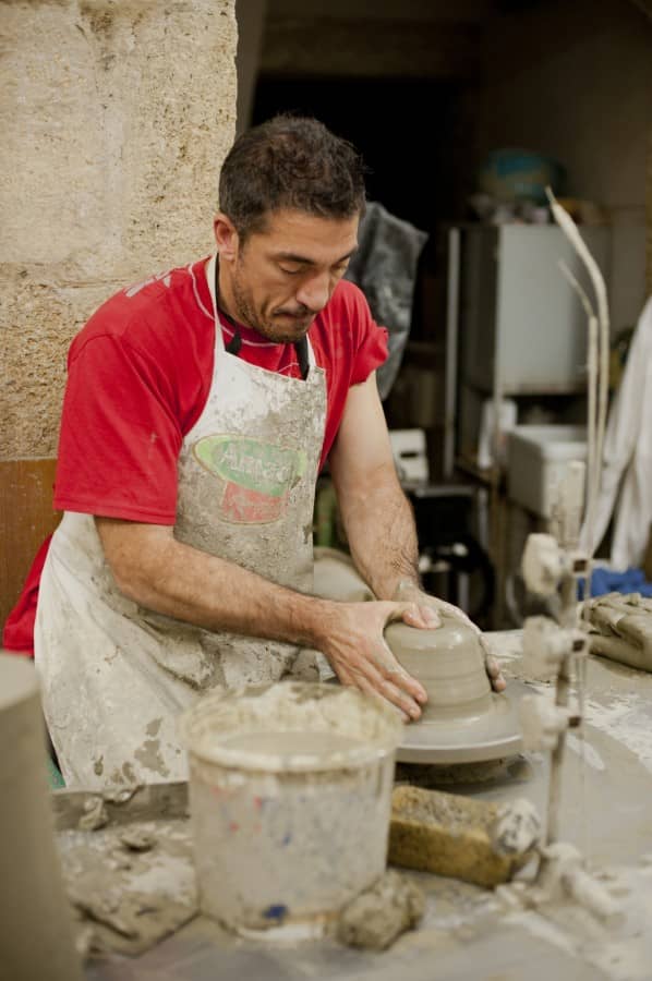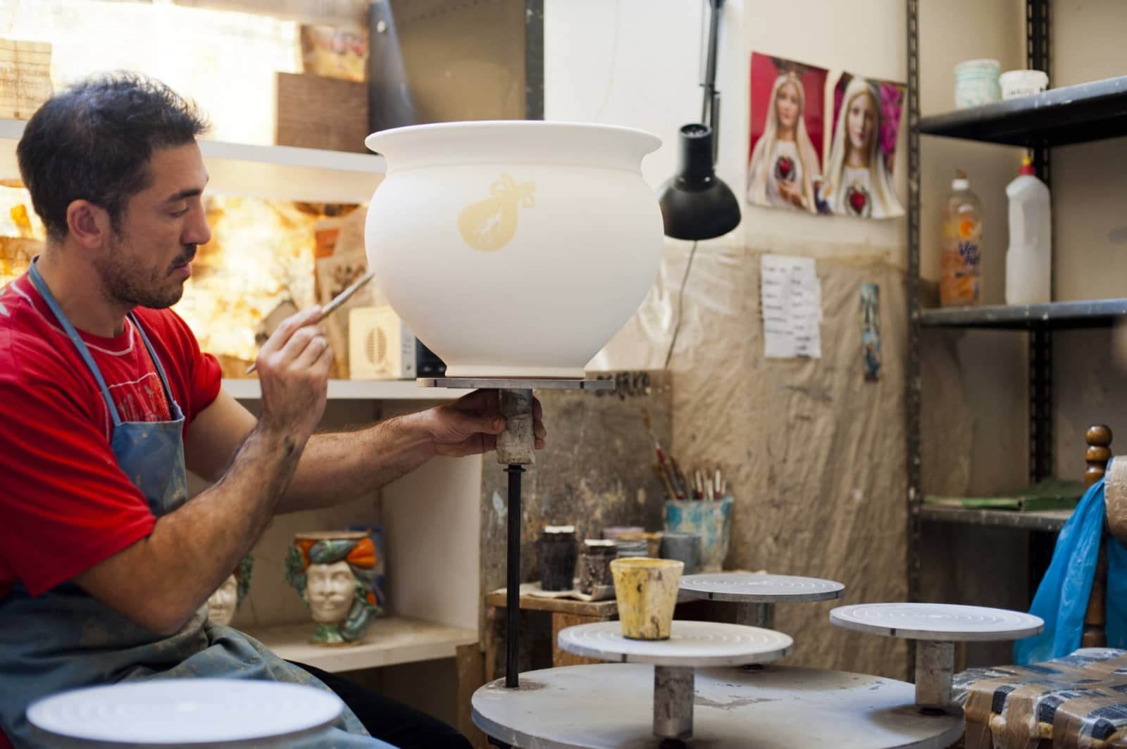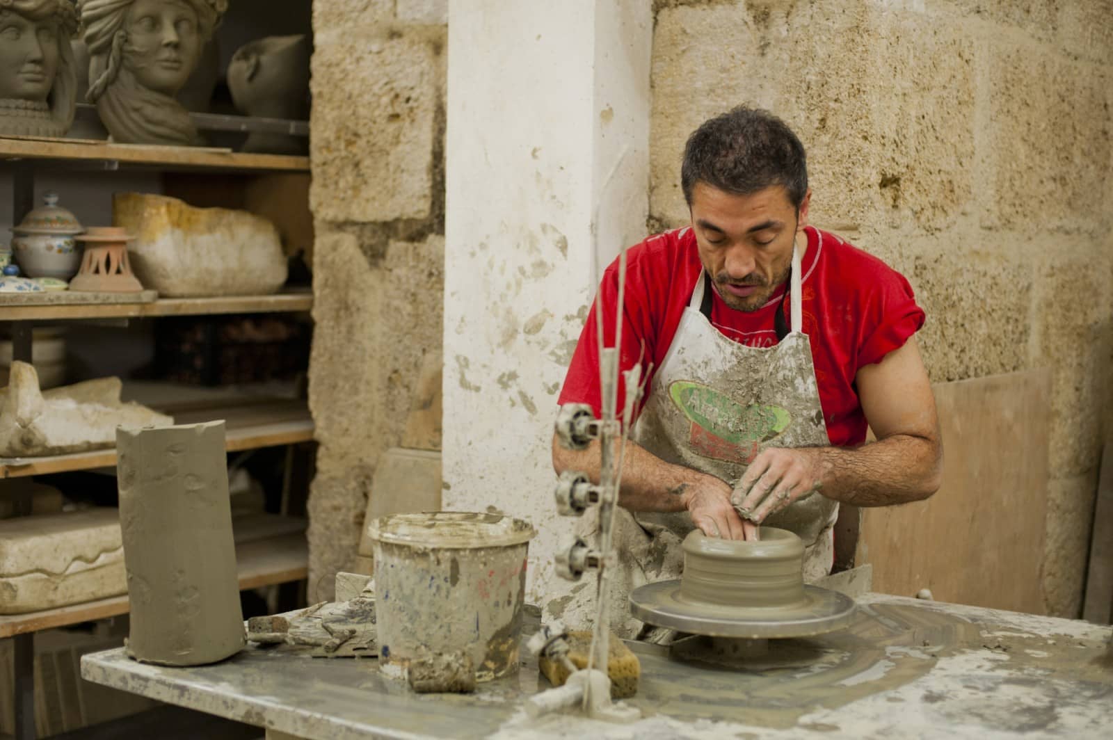 Oggi ha un suo laboratorio nel centro storico della cittadina siciliana dove dà forma a vasi, lucerne, piatti e oggetti d’arte sacra. Nel negozio annesso sono esposti sia i tipici vasi antropomorfi della tradizione calatina che sue interpretazioni d’avanguardia, oltre alle riproduzioni di protomaioliche del XIII secolo. Ogni creazione è espressione di lavoro manuale ed intellettuale, di sentimento e di emozioni.