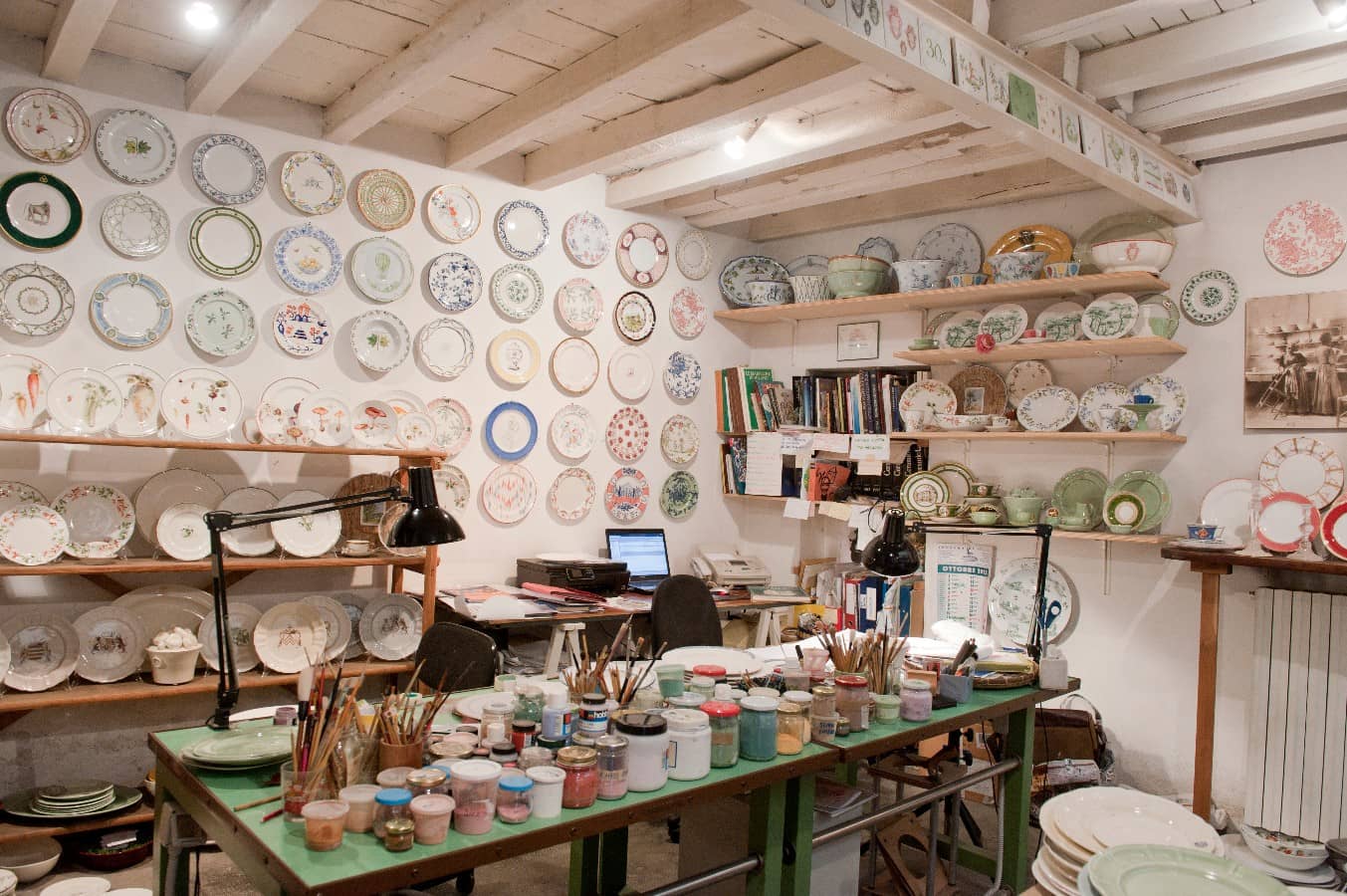 Nascosto in un cortile nel centro della“vecchia” Milano si trova una piccola ma raffinatissima bottega artigiana di ceramiche decorate rigorosamente a mano.