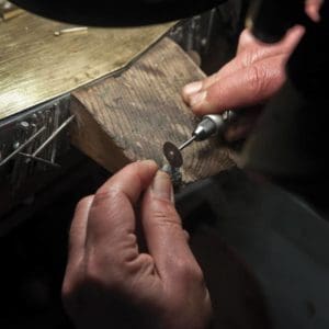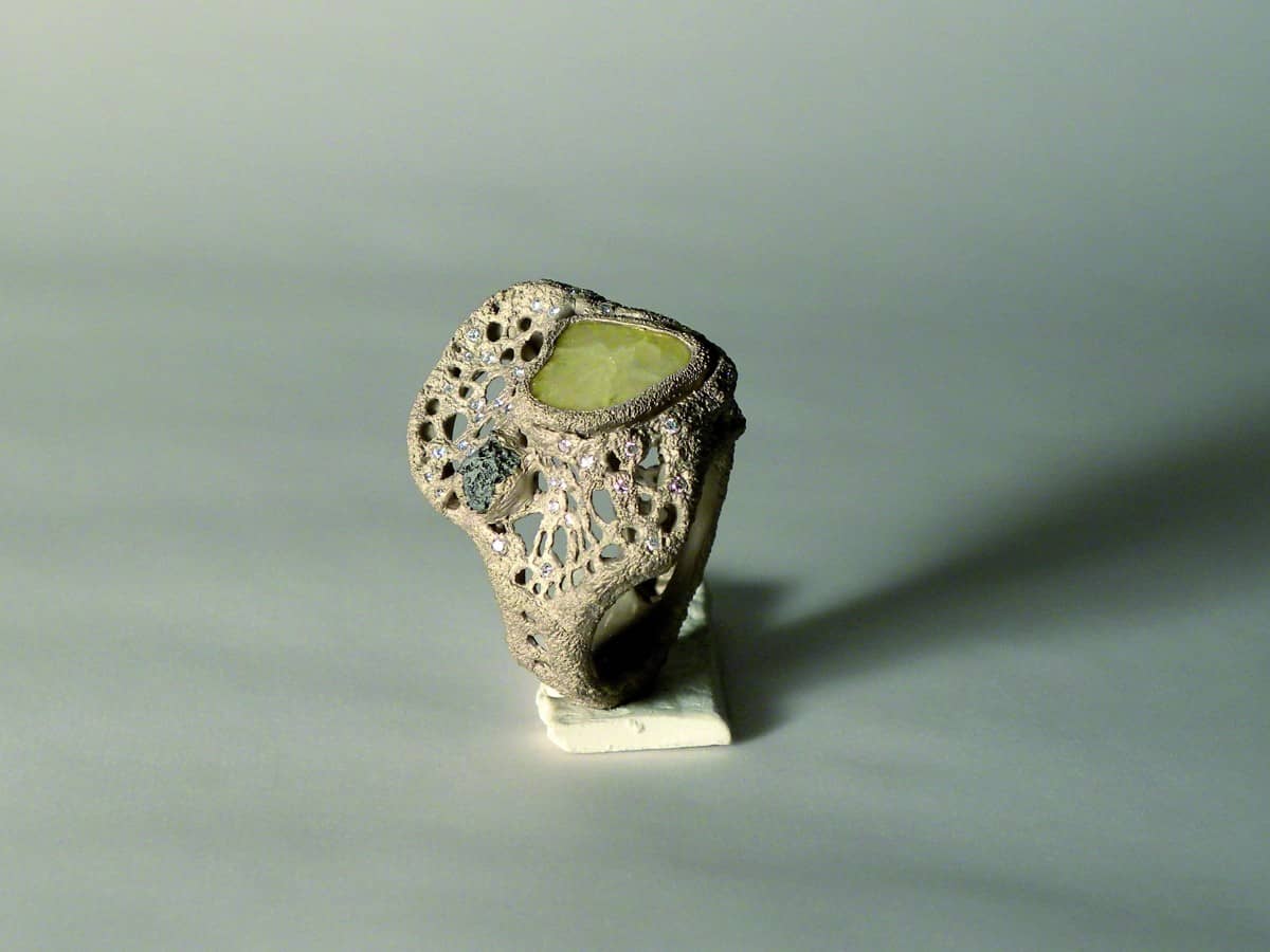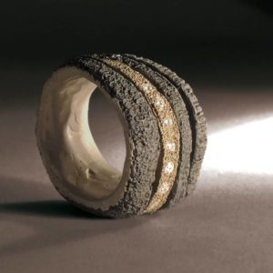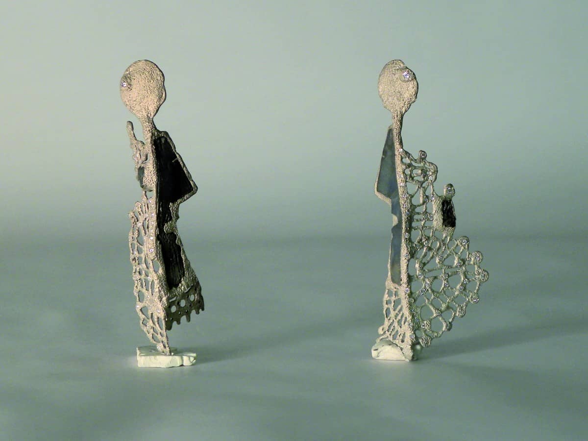 Il suo lavoro si basa su una materia considerata non come elemento inerte ma mutevole che sprigiona energia. Tutti i suoi monili, così come pure le sculture in legno d’ulivo, sembrano nascere dalla mano come quelle figure che, tracciate distrattamente sulla carta, d’improvviso si rivelano incantevoli.