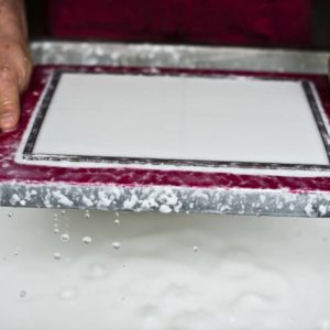 Fabriano è famosa nelle Marche per la sua tradizione artigiana della carta, che risale al XIII secolo. Qui ha sede il laboratorio di Sandro Tiberi, artista e maestro artigiano che da anni realizza carta fatta a mano con la tecnica della filigrana, dando vita a bellissimi fogli, buste e biglietti decorativi, oltre a lampade d’arredo. Impiegando processi tradizionali e materiali pregiati, è in grado di soddisfare tutte le esigenze, comprese quelle di chi utilizza stampanti di ultima generazione. Allestisce e partecipa a mostre ed eventi in tutta Italia. Inoltre, è molto impegnato nell’attività formativa, organizzando corsi per bambini, adulti e persone con disabilità. Il suo amore per questa arte e per l’insegnamento lo ha portato alla fondazione dell’Accademia delle Arti Cartarie di Fabriano, un significativo progetto per la valorizzazione di questo storico distretto artigianale.