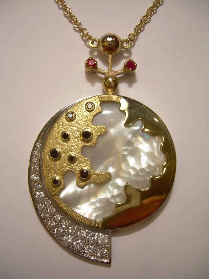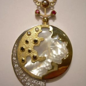 Simone Groppi è un orafo scultore, diplomato presso l’Accademia di Belle Arti di Brera a Milano. Seguendo le orme del padre Franco, maestro orafo che avviò l’attività negli anni Settanta, ha continuato la ricerca degli splendori delle antiche civiltà perdute, attraverso la riproduzione di gioielli e monili, come pettorali, anelli, orecchini e bracciali.