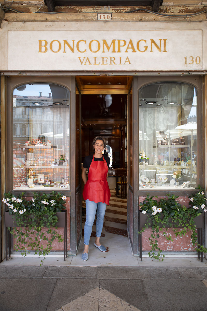 Valeria Sacchi Boncompagni è un’artigiana e designer di gioielli nata a Milano e cresciuta tra il capoluogo lombardo e Venezia, città in cui si è trasferita subito dopo il diploma per seguire il proprio percorso creativo. Lavora nella boutique di famiglia in Piazza San Marco, fondata dal nonno negli anni Venti come negozio di antiquariato e poi trasformata dalla madre in gioielleria, un luogo che per lei rappresenta insieme radici, casa e laboratorio.