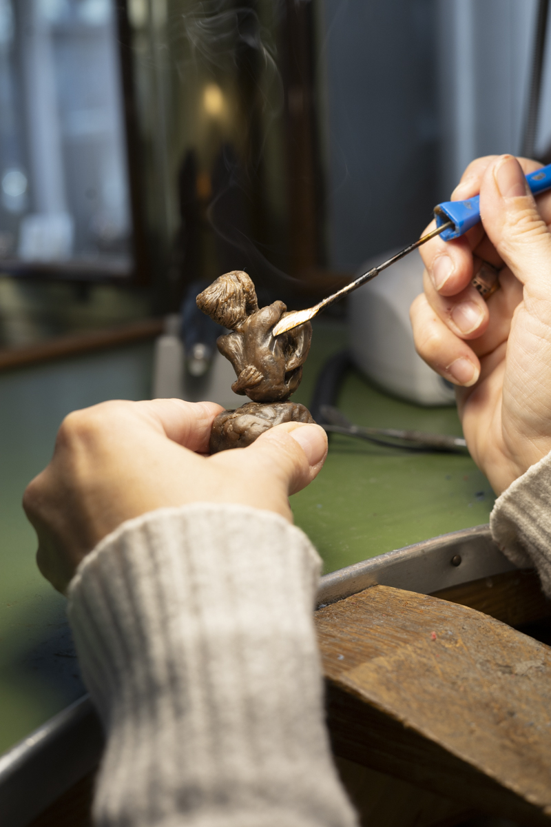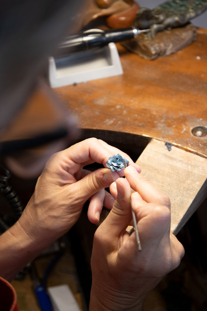 Parallelamente alla produzione, Valeria dedica grande attenzione alla trasmissione del sapere artigianale: durante l’anno scolastico porta il suo banco di lavoro nelle scuole, insegnando ai più giovani il valore del lavoro manuale e della creatività, con l’obiettivo di custodire e rinnovare la tradizione orafa. Oltre a ciò, Valeria offre anche workshop privati incentrati sulla lavorazione della cera persa rivolti sia a principianti che a professionisti del settore.
