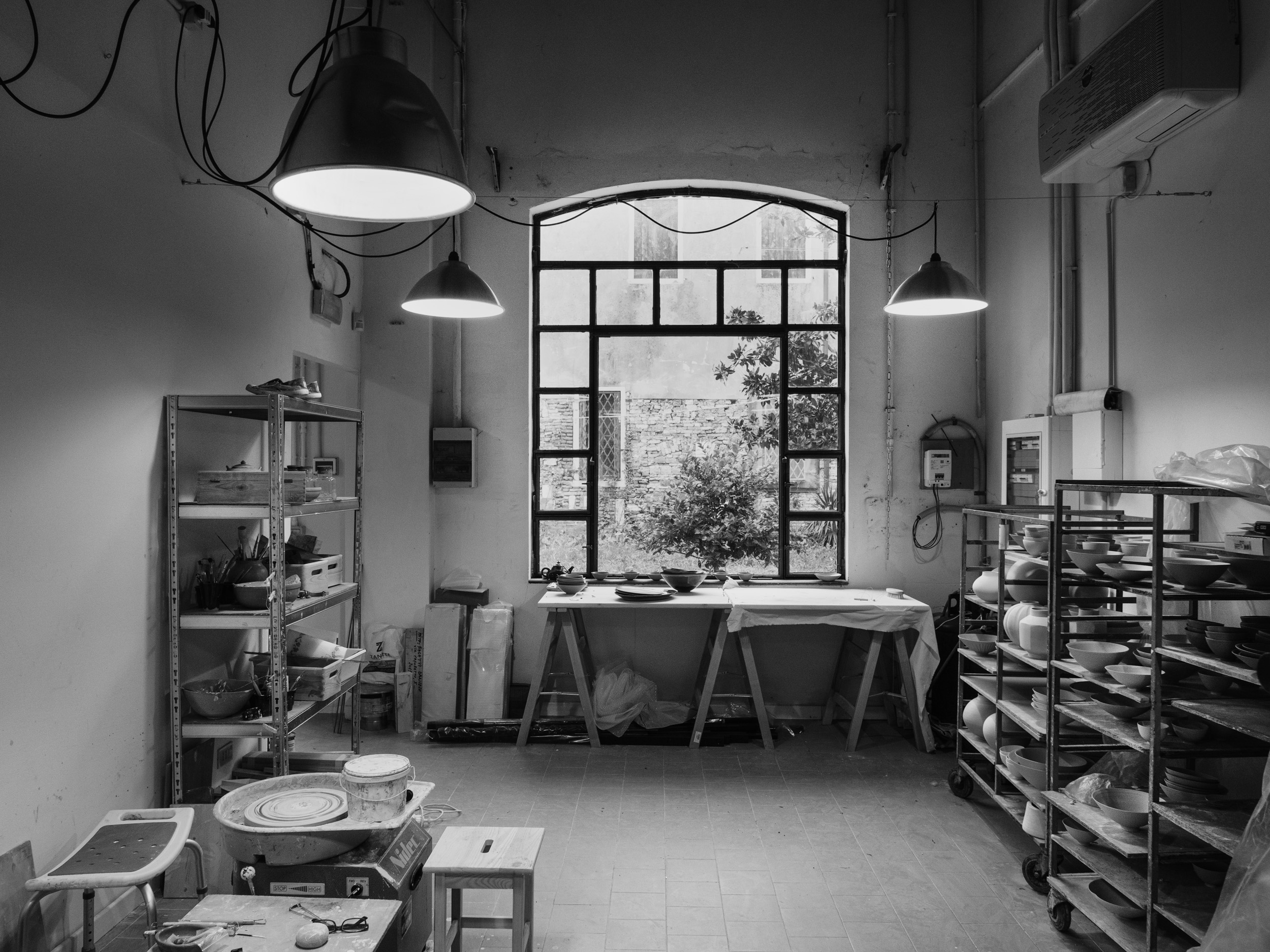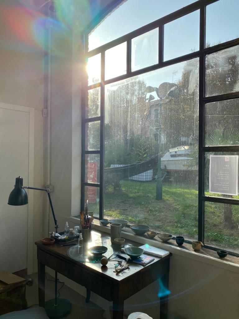 Adele Stefanelli started to follow courses in ceramics in Geneva, after having visited the Fondazione Baur. She trained in the technique of throwing pottery from the finest master potters in Deruta and Nove and during her international travels, she has had many occasions to study and perfect other traditional techniques that can now be seen in her characteristic style: from the simplicity of Sudanese ceramics to the aesthetics of the Joseon dynasties of South Korea where she worked by the side of the maestro Kim Se Yong and the Kintsugi technique that she studied in China and Japan. Today in her workshop in Giudecca, she creates on her wheel a series of decorative objects and tableware in a simple and refined style, and also carries out repair works using the Kintsugi technique with pure gold. She prepares her glazes using ashes from different plants, according to ancient recipes of China and Korea.