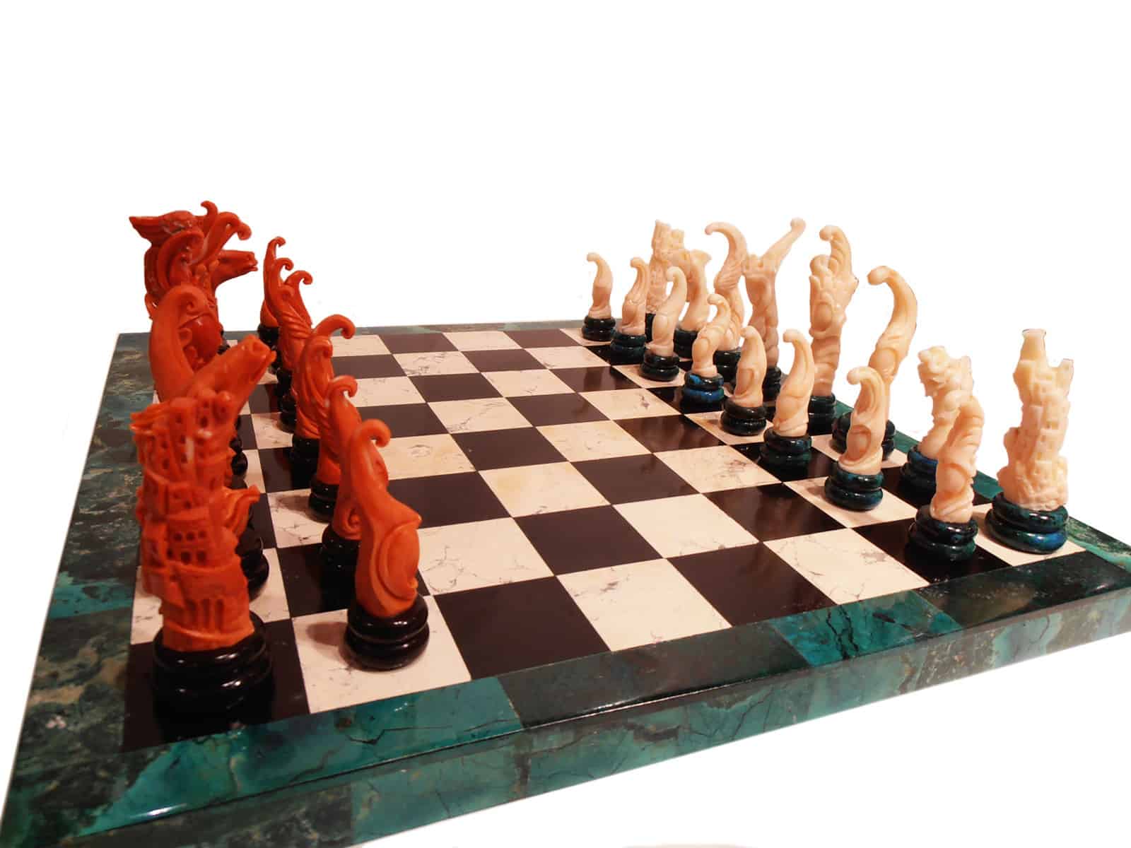 Fishing, producing and selling coral has been the Sorrentino family’s trade for many centuries. In 1970, Alessio Sorrentino established his company in Torre del Greco, specialising in engraving and sculpting coral and semiprecious stones such as mother of pearl, amber, and turquoise.