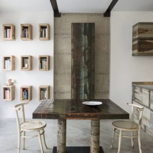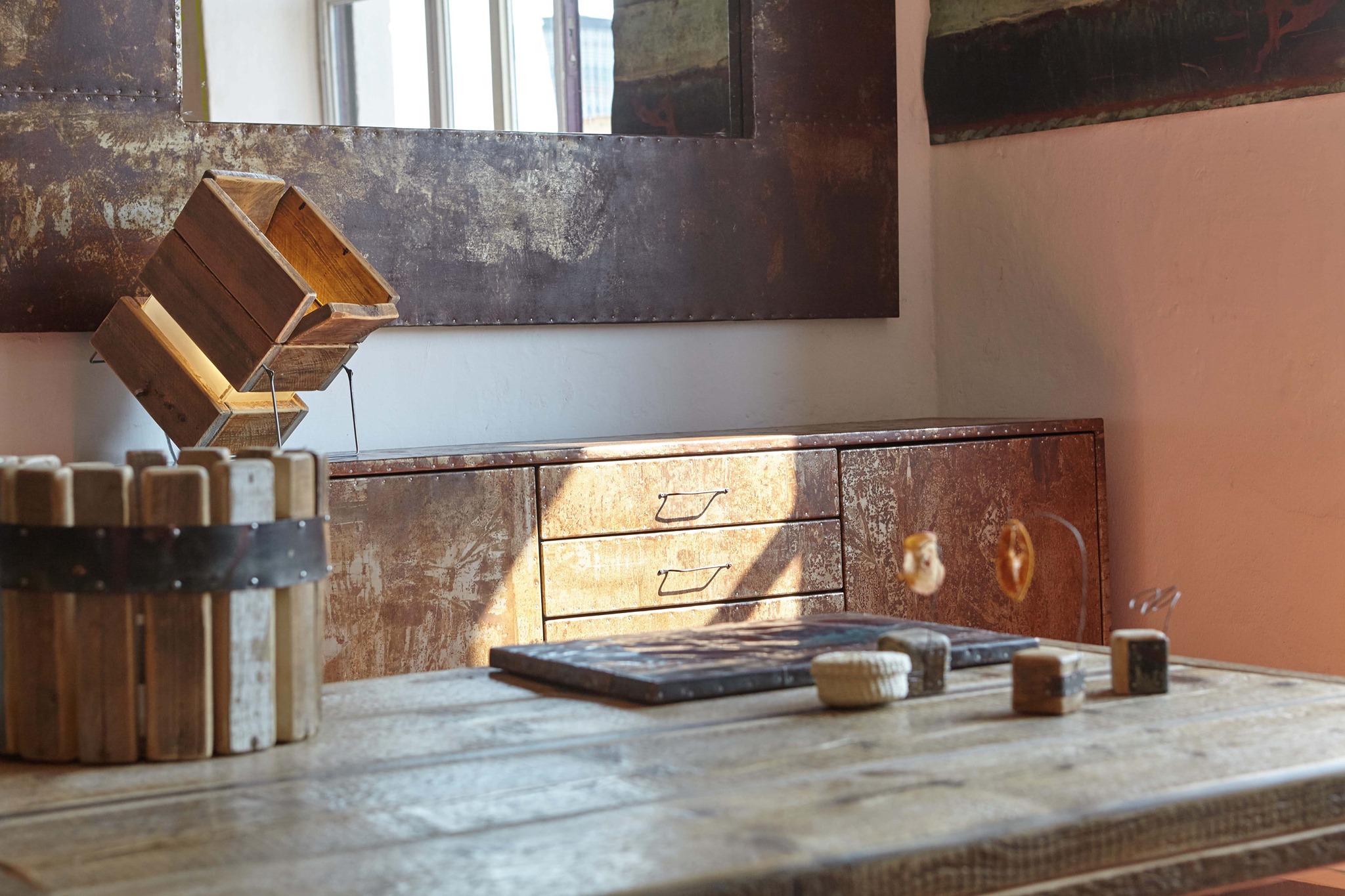 Worn-out, damaged materials are reassembled in this workshop, giving life to new, unique pieces with a taste of the past. Irregular surfaces spell originality, and flaws mean value.