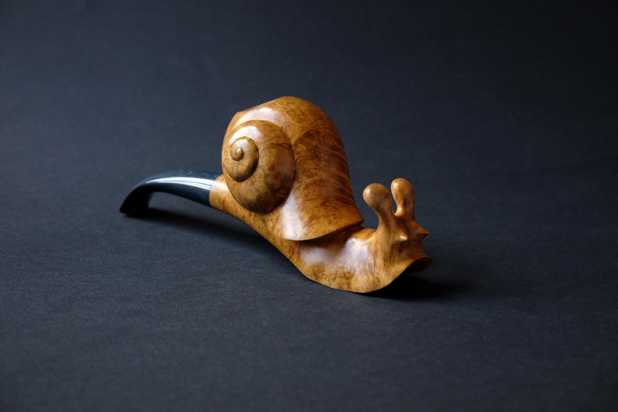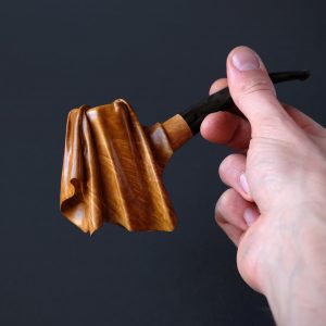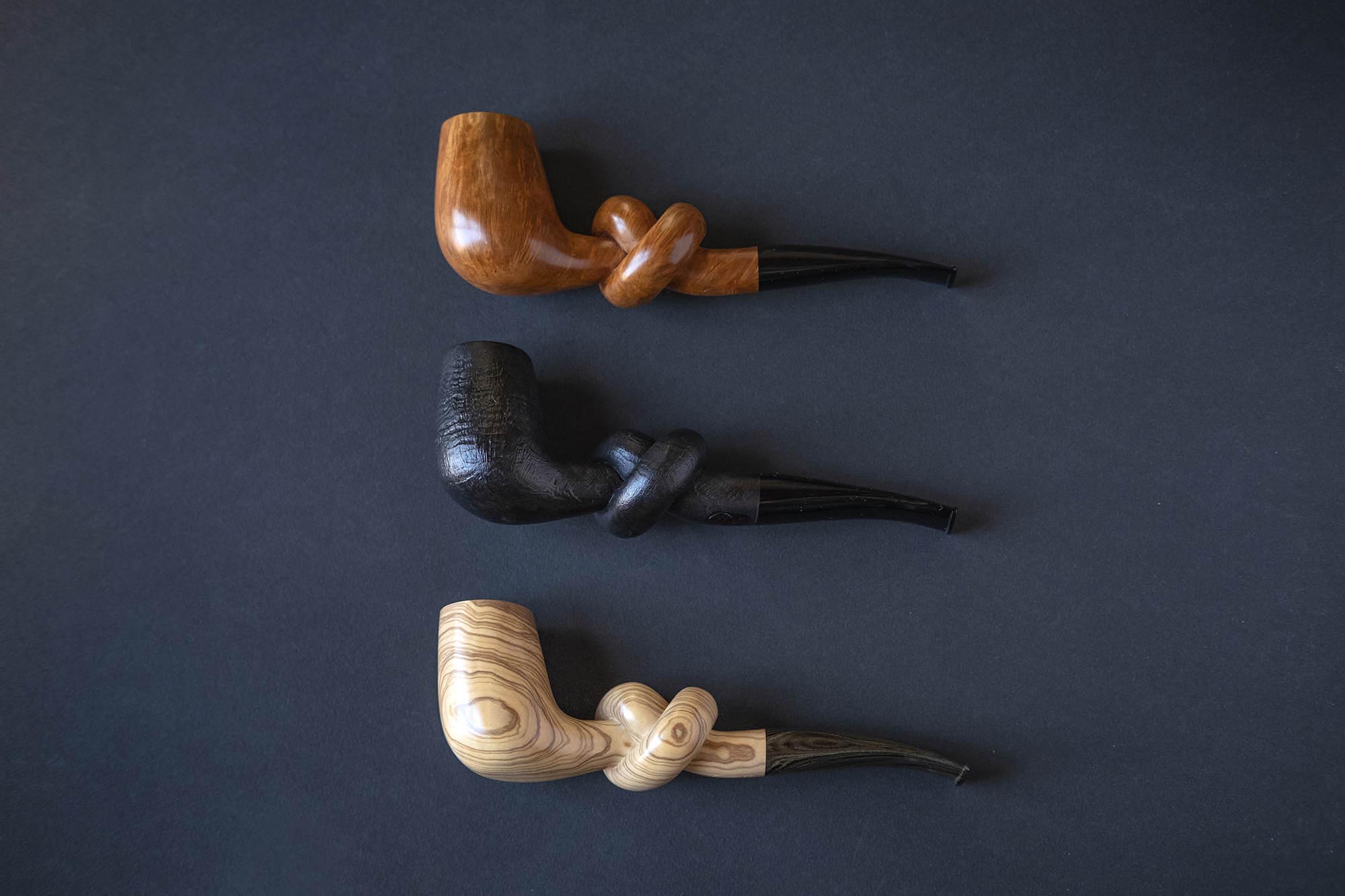 His pipes are precious, contemporary style micro-sculptures, featuring different designs ranging from ironic to minimalistic and surreal; from simple, elegant lines to complex and bizarre shapes, inspired by nature and animals. His work is deeply rooted in research: a creative process where wood isn’t just a mean of expression, but rather the main protagonist, with its many features and possibilities. Thanks to his skill and technique, Arcangelo is capable of highlighting the many textures and grains of wood, turning them into refined decorative motifs. His works are a combination of aesthetics and functionality as well as a tactile experience.