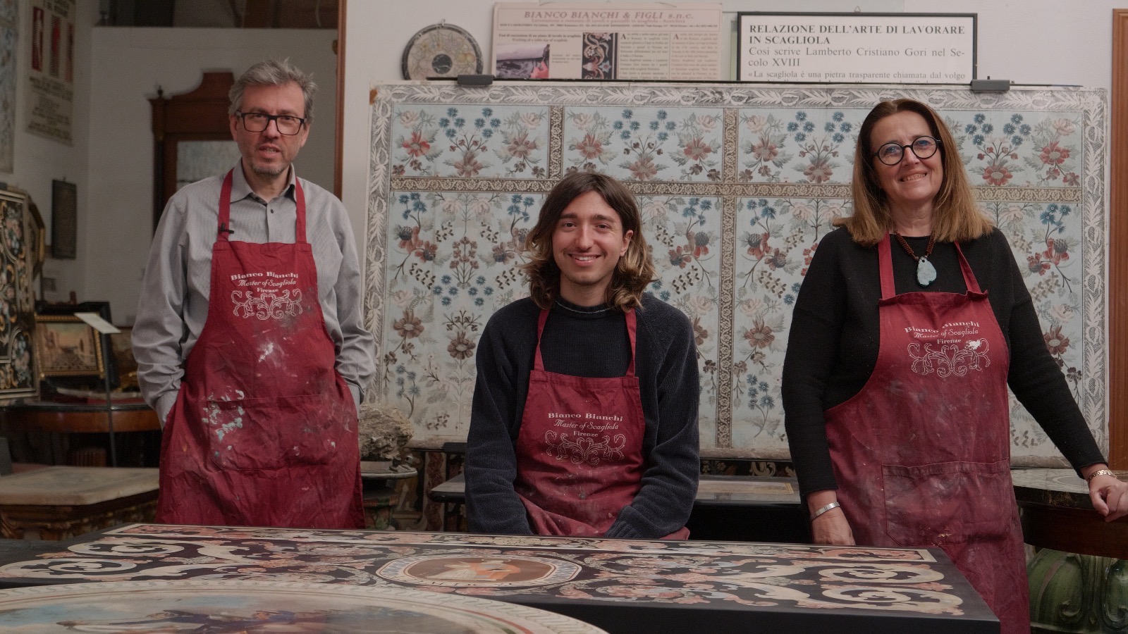 After studying art in Florence, the siblings joined their father in the early 80s in the family workshop, first as apprentices and then as accomplished craftspeople. Their work has been featured in numerous exhibitions, where they also gave demonstrations of the technique. The exhibitions took place in Italy and around the world—from Florence, Milan and Rome to Munich, new York and Philadelphia. The family’s collection of historic scagliola pieces has been exhibited at many prestigious cultural venues. The Bianchi also hold conferences and seminars presenting the centuries-old art technique, which involves mixing coloured pigments, natural glues and selenite powder to create precious inlays.