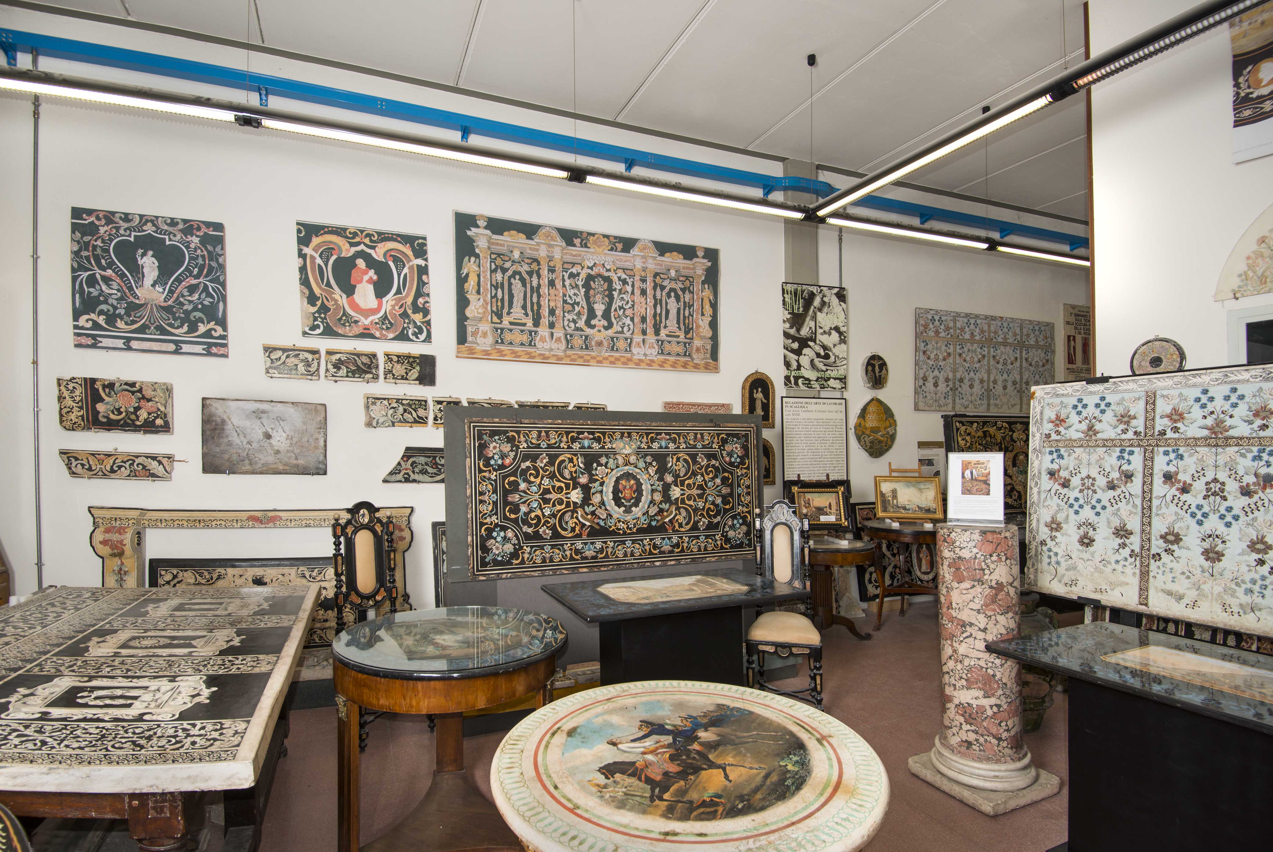 Today, the workshop crafts and restores scagliola works and holds courses. The unique, extraordinary pieces it creates grace the most beautiful homes around the world. It has also created the celebrated Medusa table, which has become the logo of the Versace fashion house. In the workshop’s museum, age-old pieces and restored works form one of the most important collections of scagliola in the world.