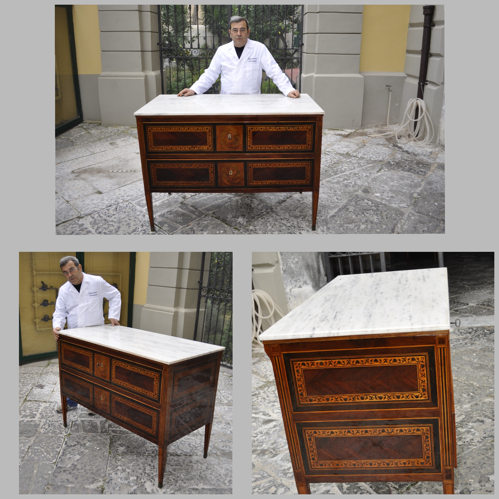 Luca and Amedeo are a recent discovery and I adore their miniature furniture! I am grateful to the Roman architect who introduced them to me because I might never have met them in my life, not because I don't like Naples, but because “miniature furniture” evokes dolls' houses to me, not high cabinetmaking masterpieces like theirs. Both their knowledge of the history of furniture and their craftsmanship in replicating it in an appropriate scale are unbelievable, especially as they not only make the wooden parts, but also create castings featuring stone surfaces and antique marble.