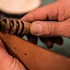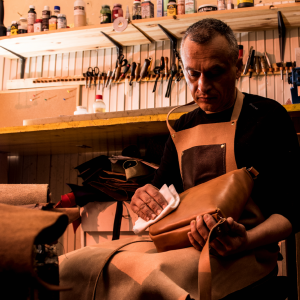 The traditional leather workshop Coryum in the heart of Cerveteri was born from the passion of Massimiliano, a craftsman with twenty years experience in the working of leather. After opening his own shoe repair laboratory in 1990, Massimiliano founded his present workshop in 2016 which now creates a series of leather products and other made-to-measure articles for discerning clients. All products are made entirely by hand, from the initial cutting to the final buffing, stitching and dying of the skins. The workshop produces a series of eco-sustainable fashion accessories in plant-tanned leather using water-based glues with linings in biological cotton. All articles are one-off pieces, often commissioned by clients or produced according to a client’s specific design.
