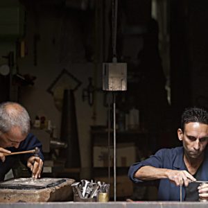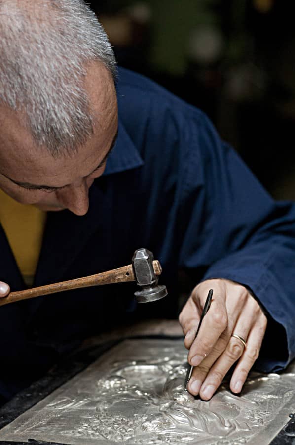 Based in Milan for over 60 years, the Dabbene family has been combining old Milanese workshops’ traditions with the innovations required by their clients’ demands. In 1938, Master engraver Marco Dabbene established a silverware workshop, which he eventually passed down to his children and grandchildren along with his philosophy and know-how. To this day, his heirs have been preserving his heritage. The workshop provides custom-made silver and gold objects mainly made to order, as well as repair and restoration works. The unique engraving hall also carries out countless customisation activities. Besides the workshop, customers can visit a showroom with a point of sale as well as the prestigious Galleria dell’Antiquariato (Antique Art Gallery), which displays Italian and foreign 17th to 19th century silverware. Exhibitions, lectures and theme conferences are also frequently hosted there.