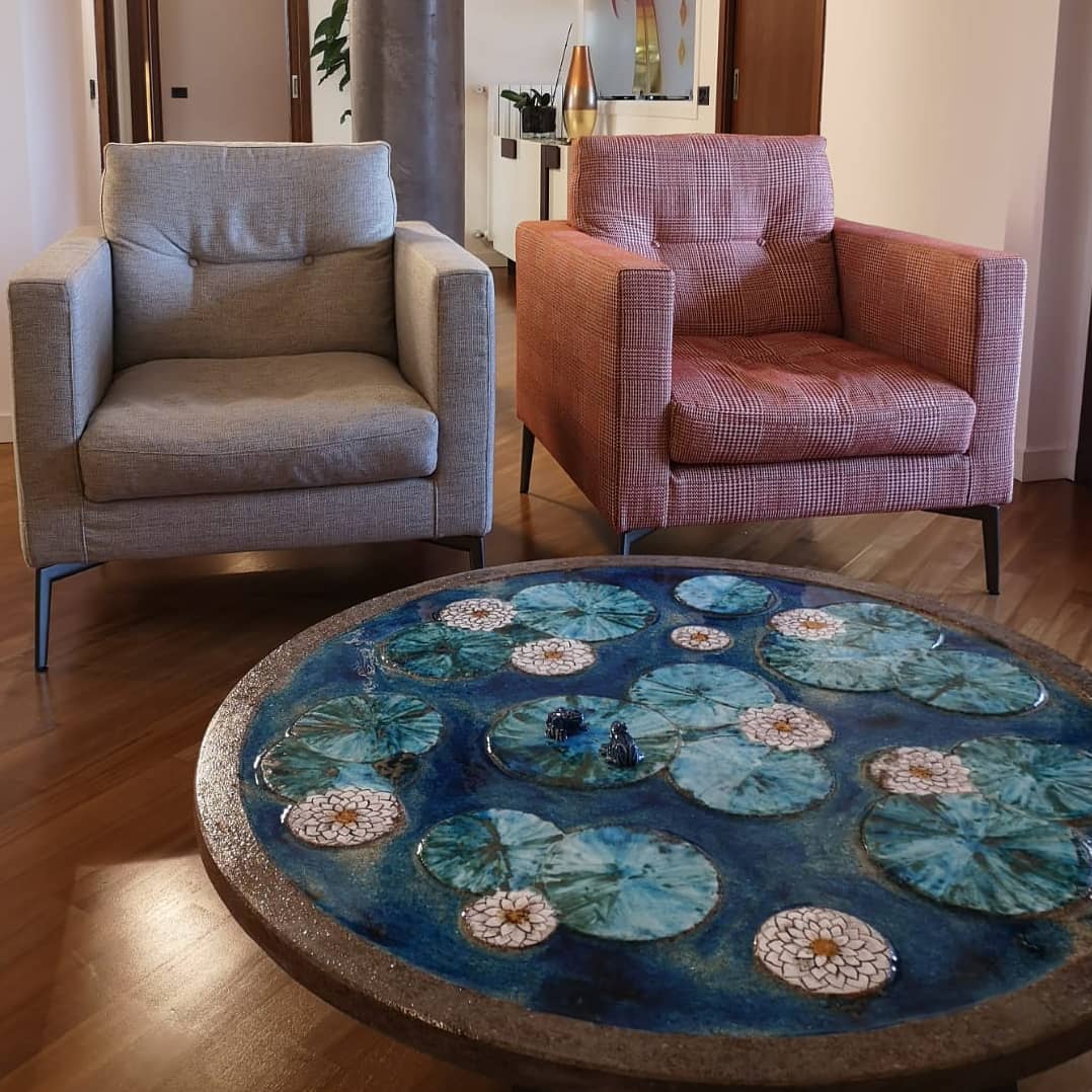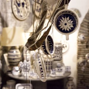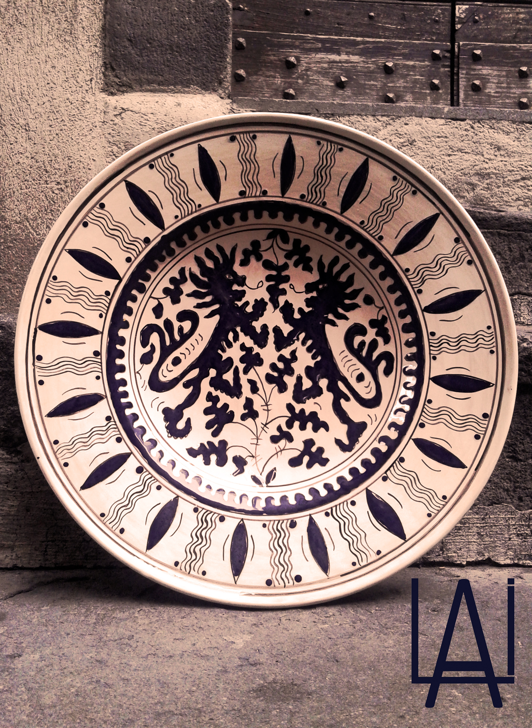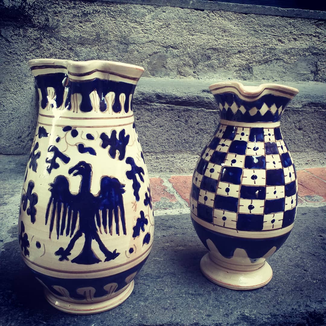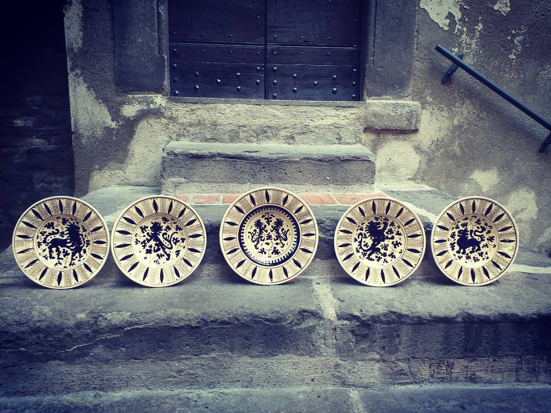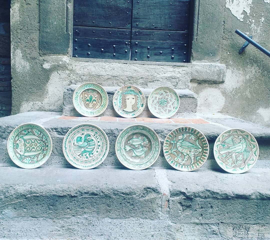 She attended the “Ars Italica” School in Viterbo, specializing in gilding, painting, ceramics and restoration. After a long working experience in partnership with other artisans, she opened her own workshop in Viterbo’s historical center, where she hand-crafts vases, plates and other ceramic items. Her production reclaims shapes and decorative patterns dating back to the 13th century, as well as the 15th century “zaffera” technique, with its signature blue relief decorations. She also carried out important restoration works, including the archaic majolicas of Celleno Vecchio’s “butto”, an archaeological find dating back to the Middle Ages. She was awarded several prizes, such as the “Premio Scultura” at Viterbo’s Biennale in 2010 and won four awards at the “Mostra Concorso Forme e Colori della Terra di Tuscia”; she created public artworks for the city of Viterbo and other municipalities in the region.