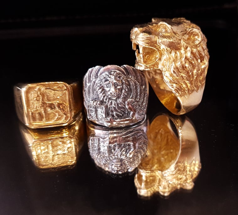 Dogale is an artisanal goldsmith and jewelry workshop in Venice. It was founded in 1969 by master goldsmith Egildo Giorgio Berto, who today runs the business with his children Ursula and Alessandro. This tiny and exclusive atelier, located right around the corner from Ponte dei Sospiri, specializes in the creation of hand crafted rings, brooches, earrings, cuff links and more. All their pieces are unique and sophisticated: from the signature “Memento Mori” rings, shaped like skulls or the mythological figure of Medusa, to the traditional and beloved “Moretti”, icons of the city, with ebony heads and golden turbans studded with precious gems; from the exclusive golden signet rings with hand carved semiprecious stone surfaces, to winged lions and other creations inspired by the Venetian goldsmith tradition. The workshop is visited by tourists, Venetians and celebrities, and serves the Lagoon’s finest clientele.