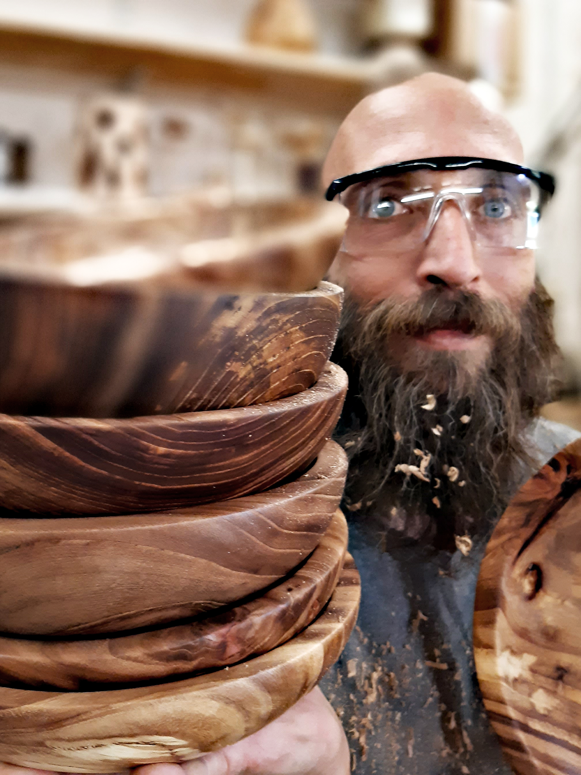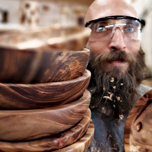 Davide Russo is the craftsman behind Dr. Unclewood. His passion for wood came about almost by accident: when his daughter was born, he crafted a changing table and other furniture pieces for her nursery. So, in 2010, he started studying and experimenting with different woodworking techniques, finding his true artistic and creative calling in woodturning. With very little mechanical help, mainly relying on his manual skills and his imagination, playing with shapes, colours and the natural traits of materials, he creates furniture, home accessories and design objects in a very contemporary style, always curating every detail and giving special attention to sustainability. Davide, in fact, utilizes exclusively locally sourced or, at the very least, Italian wood, preferably coming from urban parks’ trimmings or firewood in general.