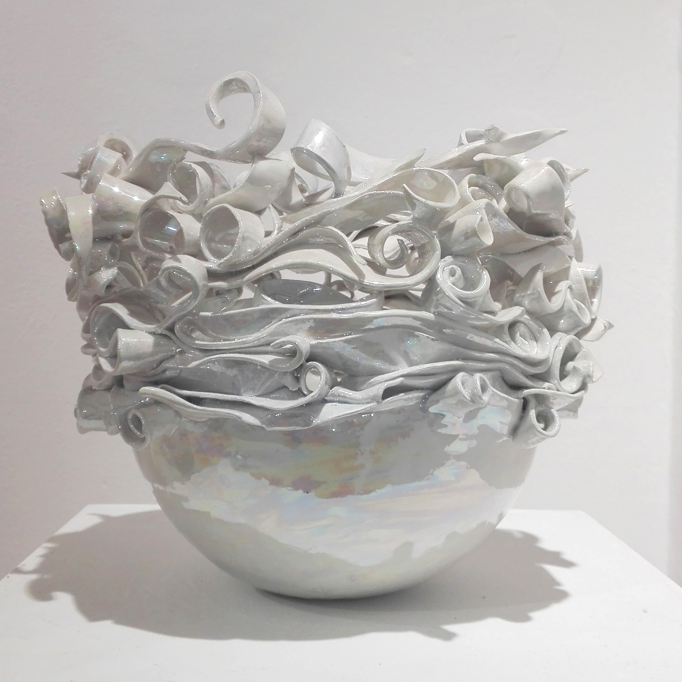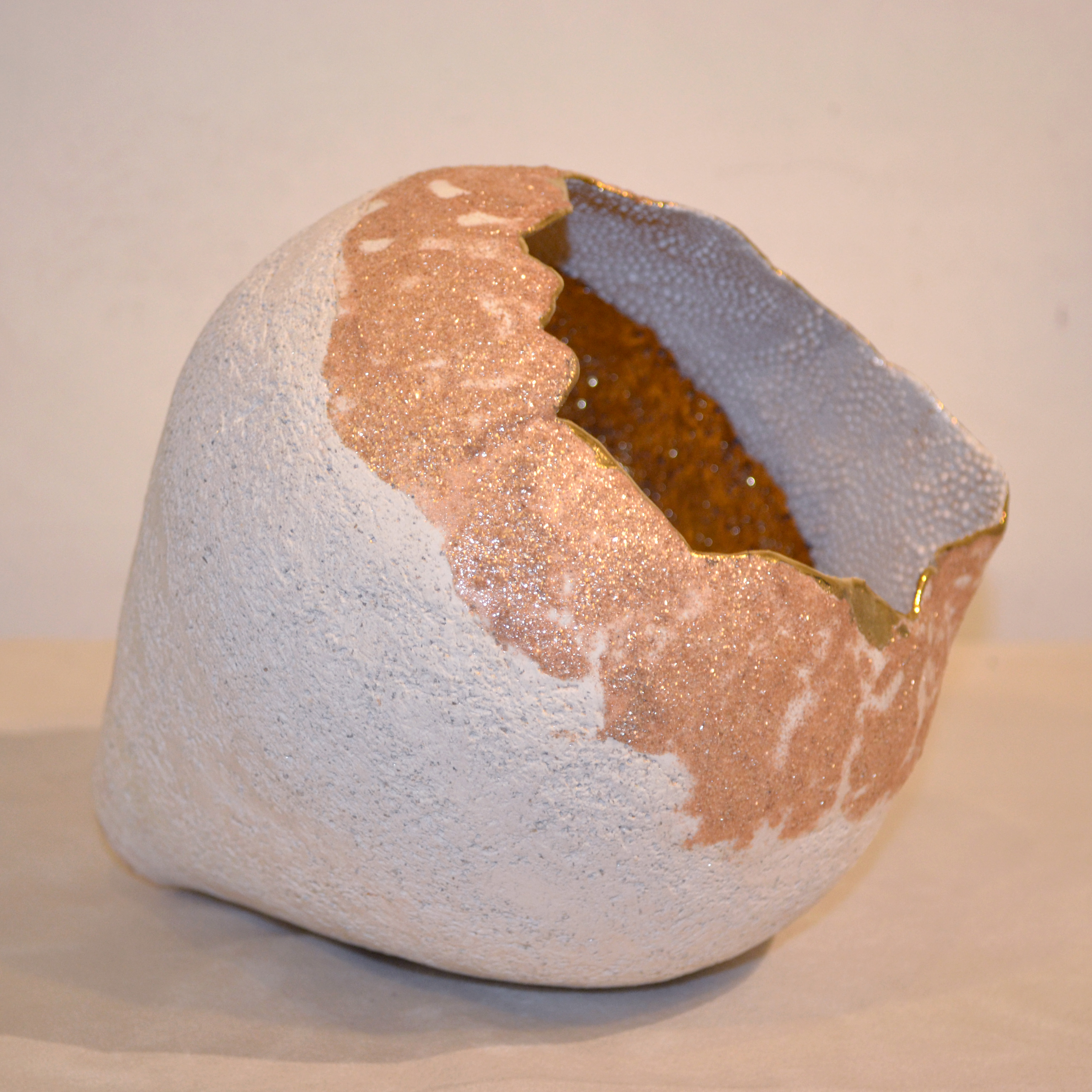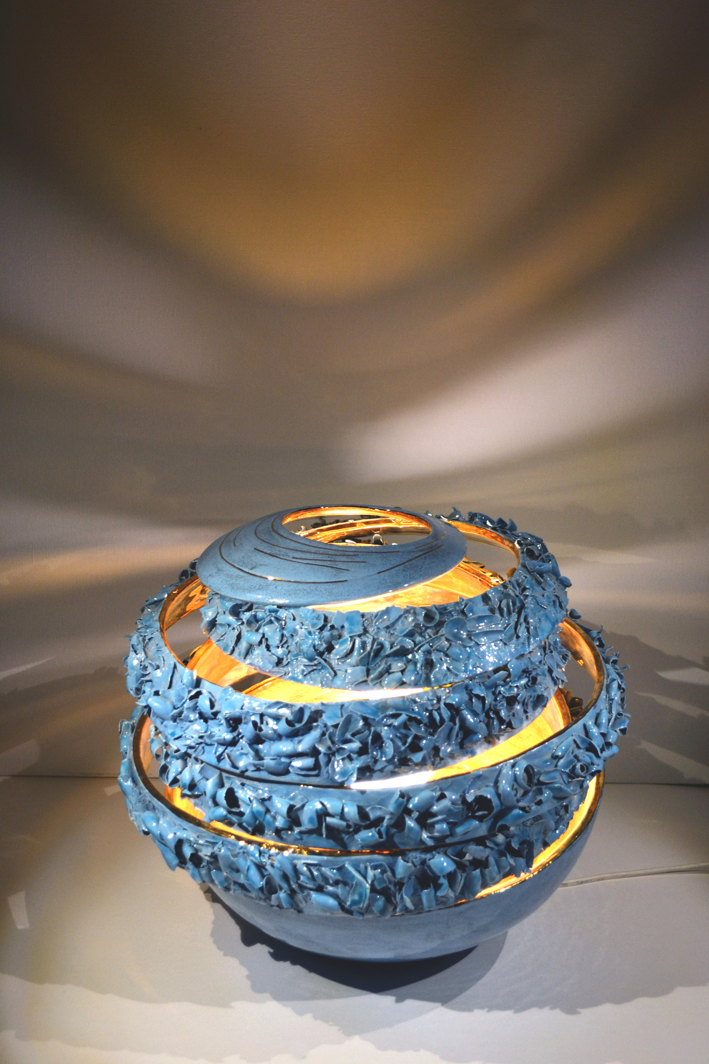 Elisabetta Cialli is an eclectic artist and artisan, who expresses herself through a variety of languages, mainly ceramics. Born in Florence, after a diploma at the Art School she studied Architecture and Design, attending specializing courses in the field of ceramics, such as the one on third-firing porcelain decoration at the Richard Ginori school. Her multifaceted training allows her to harmoniously combine various disciplines, shapes and functions in her artworks; thus, in her atelier in Florence, she creates ceramic pieces that serve both as sculptures and as functional pieces. The use of gold is one of the signature marks of her style, alongside the emphasizing of textures and unusual shapes and colours. She was a finalist at Carouge’s international ceramic competition “La Lampe Ceramique” and at “Baccio da Montelupo” international award for ceramic art.