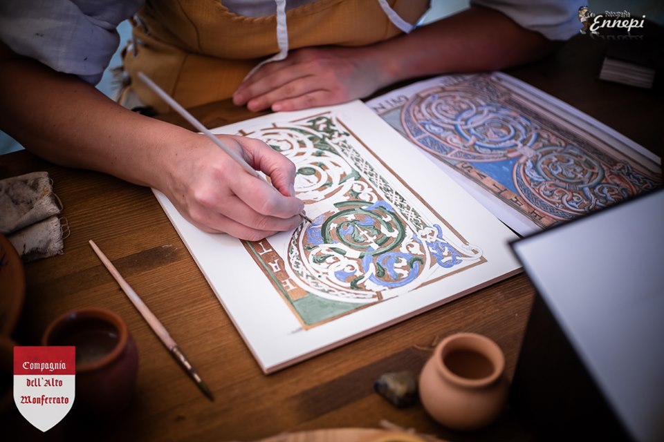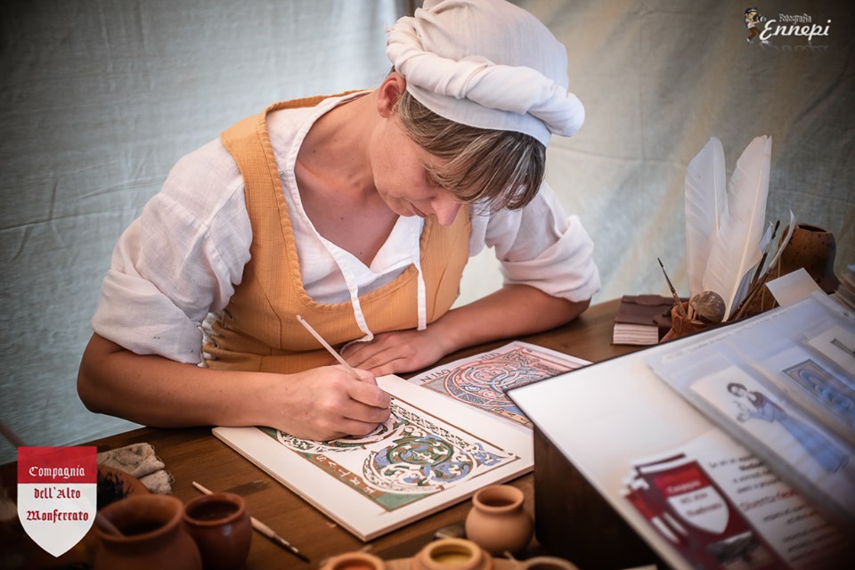 Elisa Gentini studied architectural design at the Istituto d’Arte Jona Ottolenghi, and later Construction Restoration – Colours and plasterwork at the Scuola Edile in Alessandria. After much on site experience with architectural studios on villas and in museums, she opened her own company: Eloise Decorazioni. She principally works in Piedmont and Liguria in the field of interior and exterior pictorial decoration, fresco painting, stucco and trompe l’oeil and in the restoration of wall murals. Since 2012 she has been creating artefacts and historical memorabilia by reproducing illustrations from medieval manuscripts. She shares the La Bottega Artigiana showroom and sales outlet in Acqui Terme with the craftswoman Viviana Sgarminato. In 2017 she received the “Eccellenza Artigiana” award from the Piedmont regional authorities.