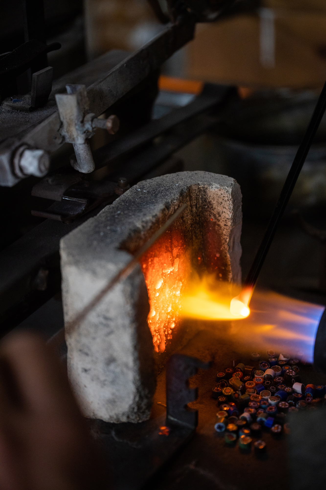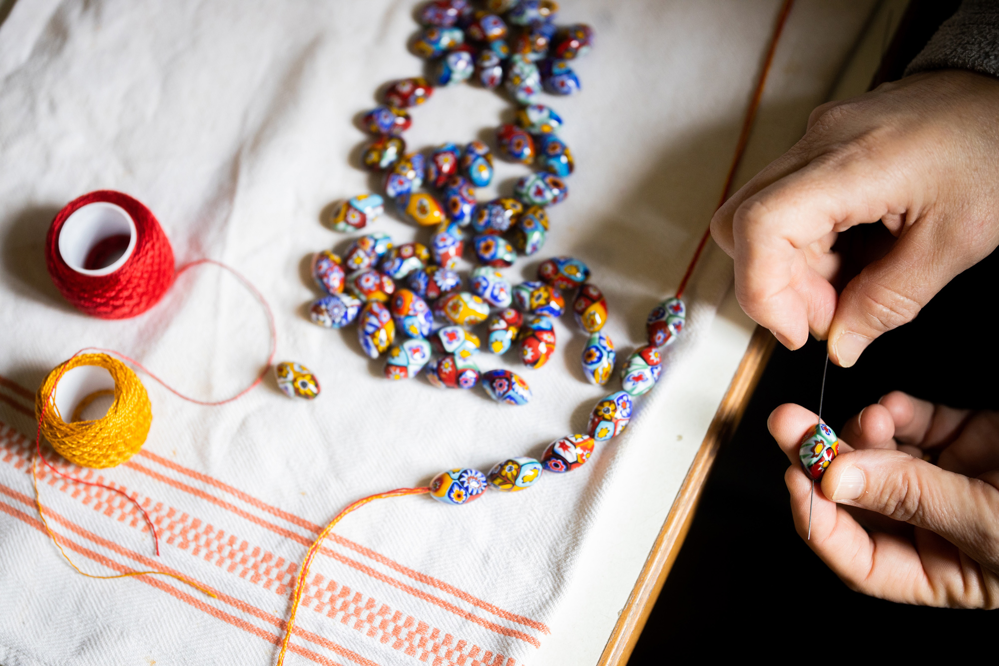 Ercole Moretti is a glass furnace which produces Venetian pearls and Murano glass objects and is specialised in the “millefiori” technique. The company was founded in 1911 on the island of Murano where it is still today; its location offers inspiration and lymph for the creation of handcrafted products with the typical forms and motifs of local tradition, glass pearls for jewellery, souvenirs and other accessories as well as plates and decorative ornaments in murrine glass, a rich and fascinating technique used by Roman glassmakers. This company has continued this important tradition with passion, inventiveness and competence for over a century by creating refined objects to adorn both the person and the ambience.