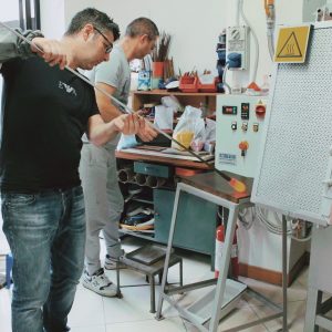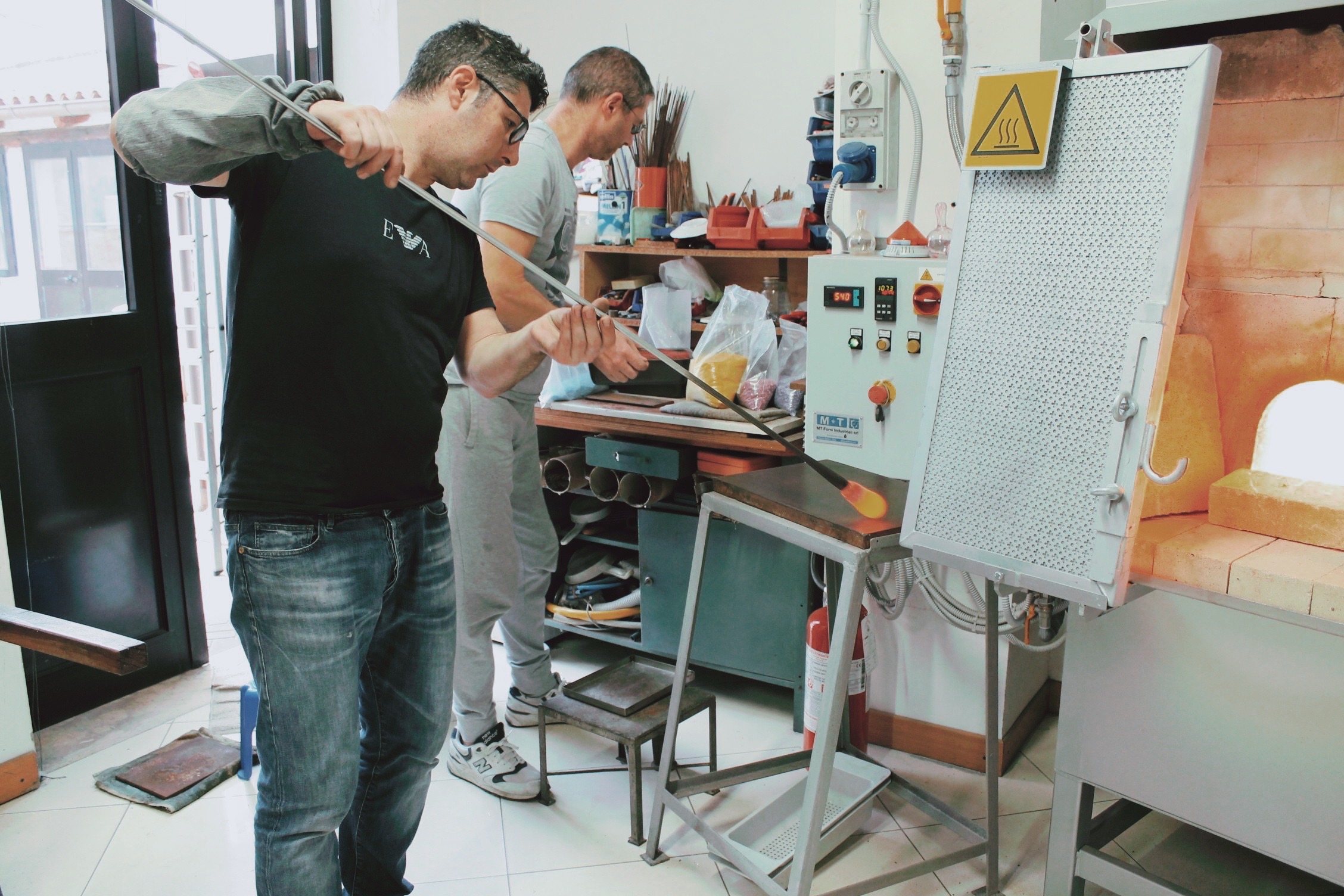 Esse2 was founded in 1990 by a family of master glassworkers, initially as producers of Venetian beads. These beads are produced using the traditional lamp blowing technique which consists in working molten glass rods which are wound round a copper rod and then decorating the bears with 18 carat gold or silver leaf. Their production range was enlarged in 2018 to include blown glass objects such as the typical Venetian goto or decorated tumbler as well as jewellery accessories and table ornaments. Working today in the laboratory are the master glassmakers Francesco Serena and Don Stefano, assisted by the bead threaders Carlotta Serena and Serena Piazzetta. Esse2’s products are characterised by their attention to the smallest detail and a design which united the refined lines of tradition and modernity.