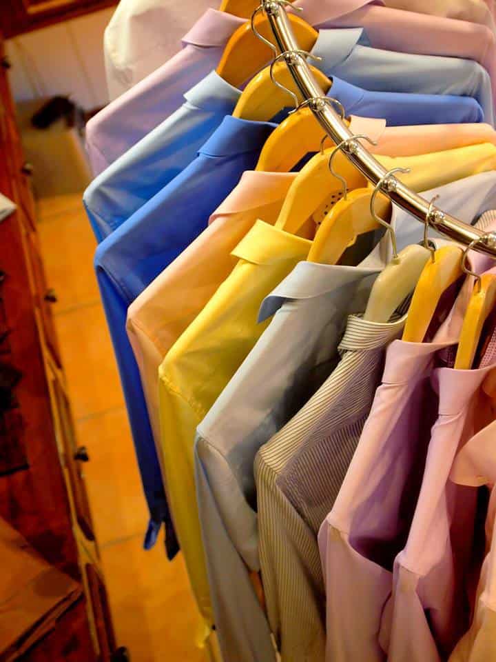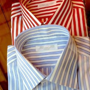 Each shirt is a unique, tailor-made piece, created so as to suit the wearer’s personality. The shop can count on a wide range of top quality fabrics and can perform special works on demand like, for example, embroidered initials. In addition, they provide customers with spare collars and wrists to replace the parts more easily subject to wear.
