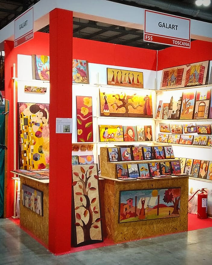 Gabriele Coraggio and Lara Battista are two talented wood artisans; together, at GaLart, they create decorative wooden panels. Lara draws the design, while Gabriele manufactures the final artwork using wooden boards. The panels are cut in different shapes and sizes; all pieces are assembled, then painted and finally polished. The creations are coated with a semi-transparent paint, making sure all the details and grain of the wood remain visible. Drawing inspiration from Tuscany’s landscapes, famous artworks and the natural world in general, GaLart creates unique handmade decorative pieces which donate to any room a warm and welcoming atmosphere.