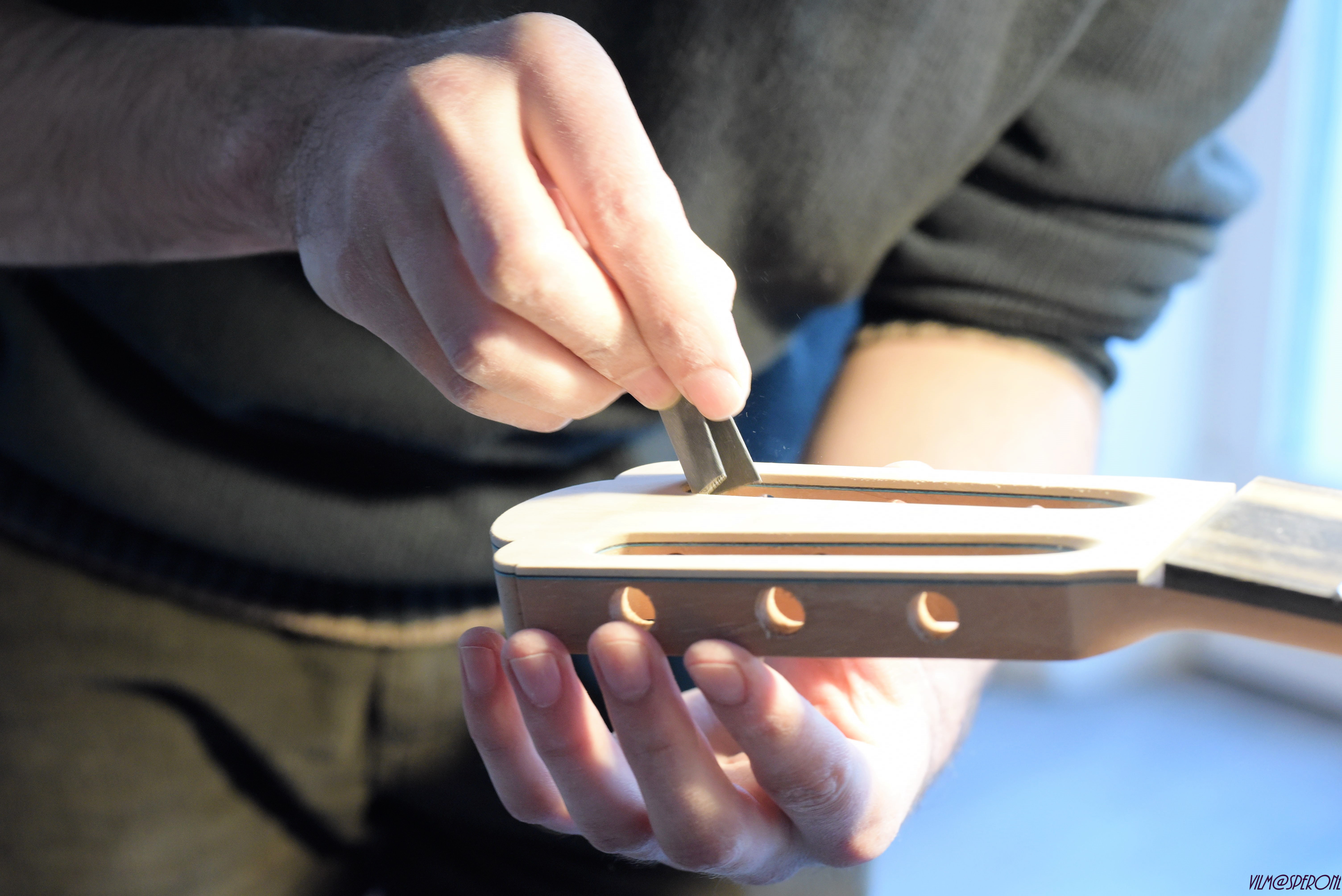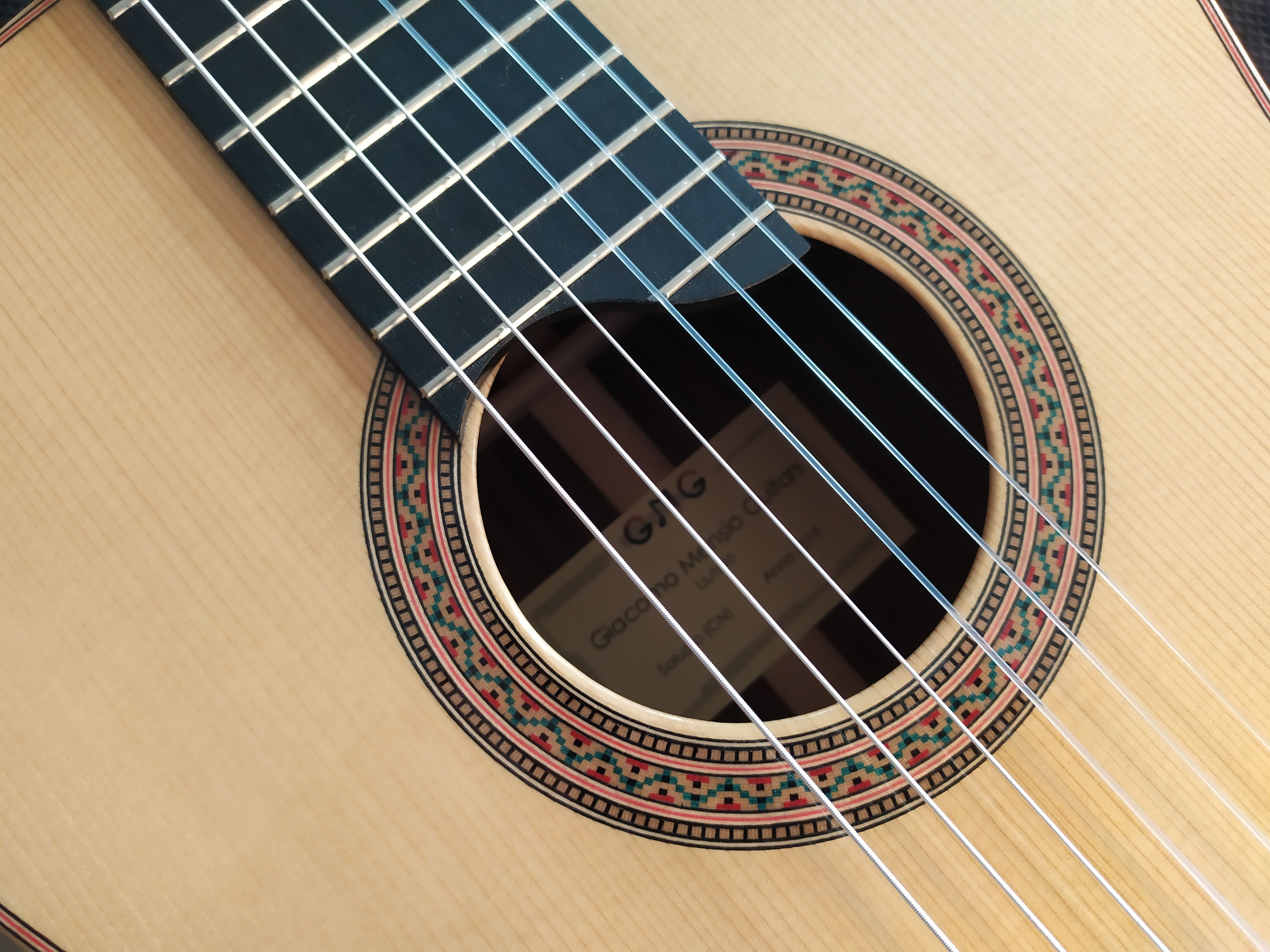 Giacomo Mensio is a young instrument maker specialised in the construction and set up of guitars and other plucked instruments. He already showed a passion and talent for music as a child: he played the classical guitar and attended the Suzuki Music School and then studied wood instrument restoration at the Istituto d’Arte in Saluzzo. He continued his studies at the Civica Scuola di Liuteria in Milan while also graduating in classical guitar at the Conservatoire. He completed his practical training by following an apprenticeship in the workshop of maestro Lucio Antonio Carbone. Having finished his practical training and receiving his diploma as luthier, he returned to Piedmont where he now teachers guitar to schoolchildren and constructs classical guitars and restoring other plucked instruments in his own workshop.