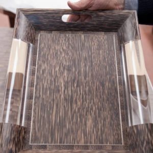 Giordano Viganò‘s workshop is in Novedrate, in the Brianza region, a place known in the whole world for its excellence in furniture design. There, Viganò creates his own perfect prototypes designed by famous architects and designers: Kuramata’s chests of drawers for Cappellini, which are still in production, are just one example of the master’s versatility. In fact, he frequently puts his art and profession at the disposal of important names such as Sawaya and Moroni, Giorgetti, Studio Vitruvio, Porro, Promemoria and architects as Carlo Rampazzi, Peter Marino. When visiting his workshop, the scent of wood and the carpenters’ ancient gestures reveal a technically advanced and stylistically open vision. This vision is on a par with the highest contemporary design. However, Giordano never forgets the essence of the beauty in this precious material. The small and extremely precious objects created by Viganò embody the poetry of masterpieces: portable ebony and galuchat chess sets, wood and precious leather pochettes, superiorly elegant wood and leather desk sets with bone finish. His large palm wood tables are also marvellous. He also makes special creations, always trying to go beyond limits. Viganò is a true interpreter. He is always looking for novelty and always finds motivating sensations. His enthusiasm is best expressed in his collaborations with young people, designers, and architects.