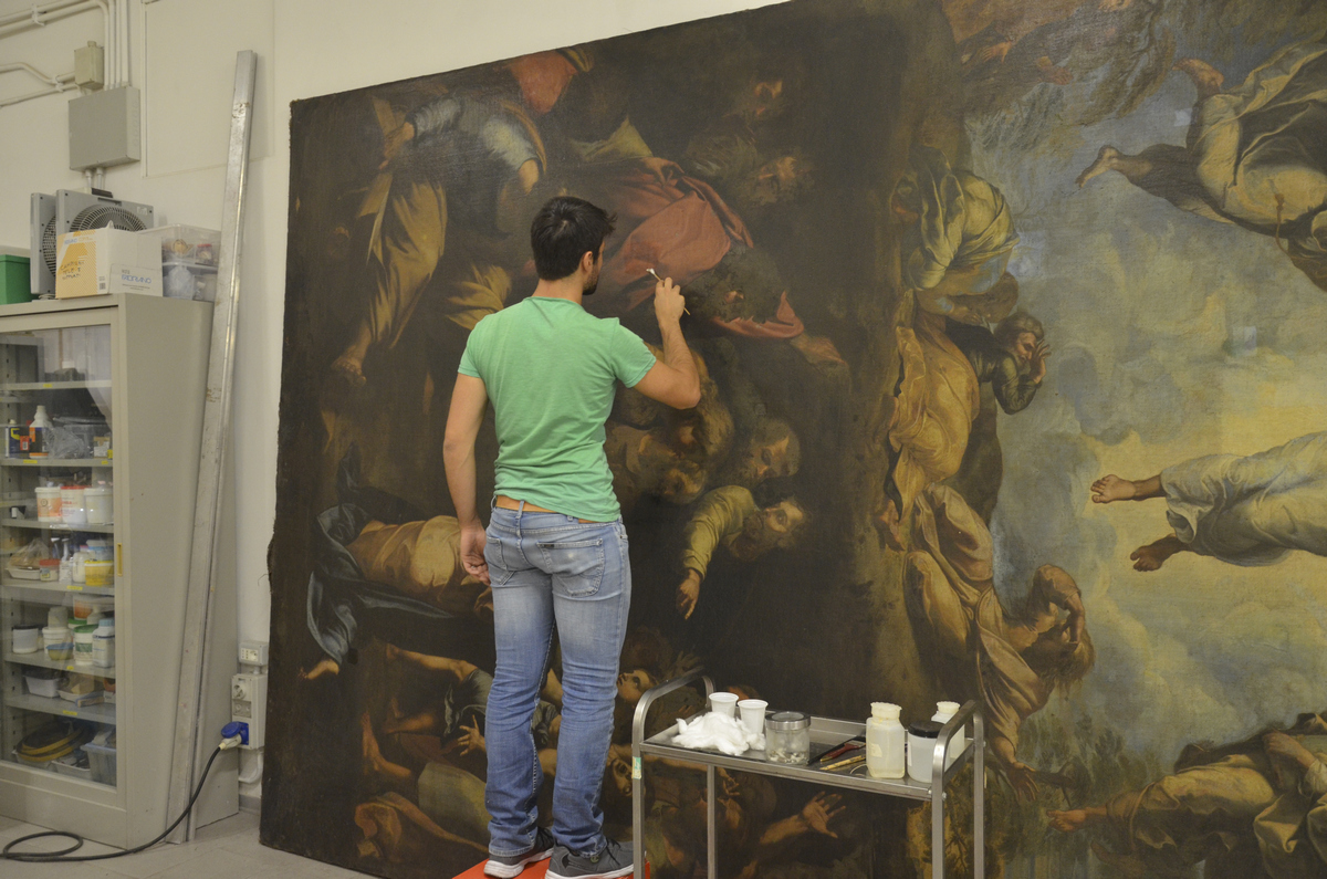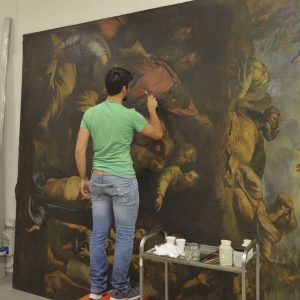 Giovanni’s work involves all types of conservation, including relining paintings, restoring antique frames, consolidating paintings and wooden structures, making climatised display boxes, treating for woodworm and onsite maintenance.