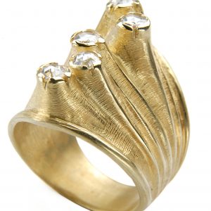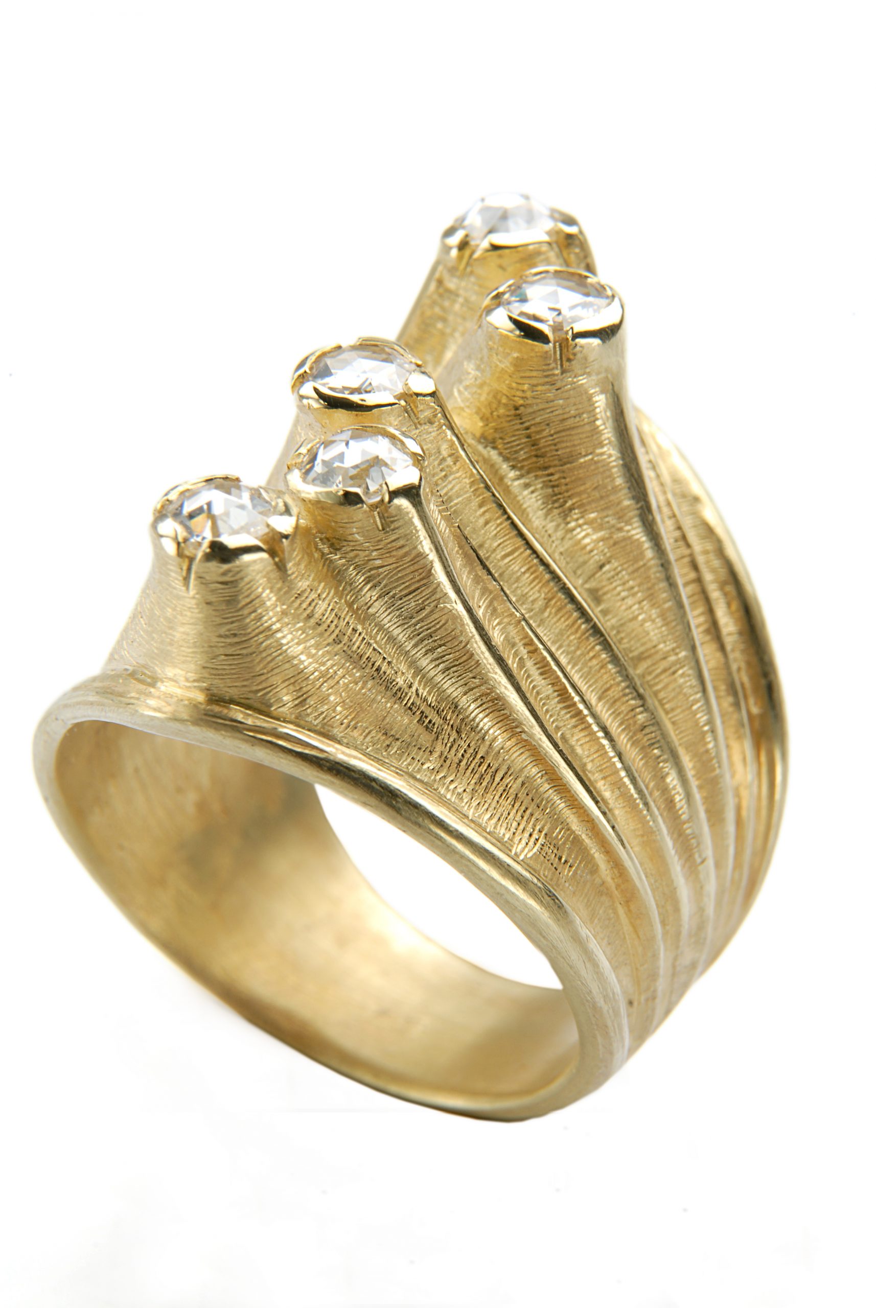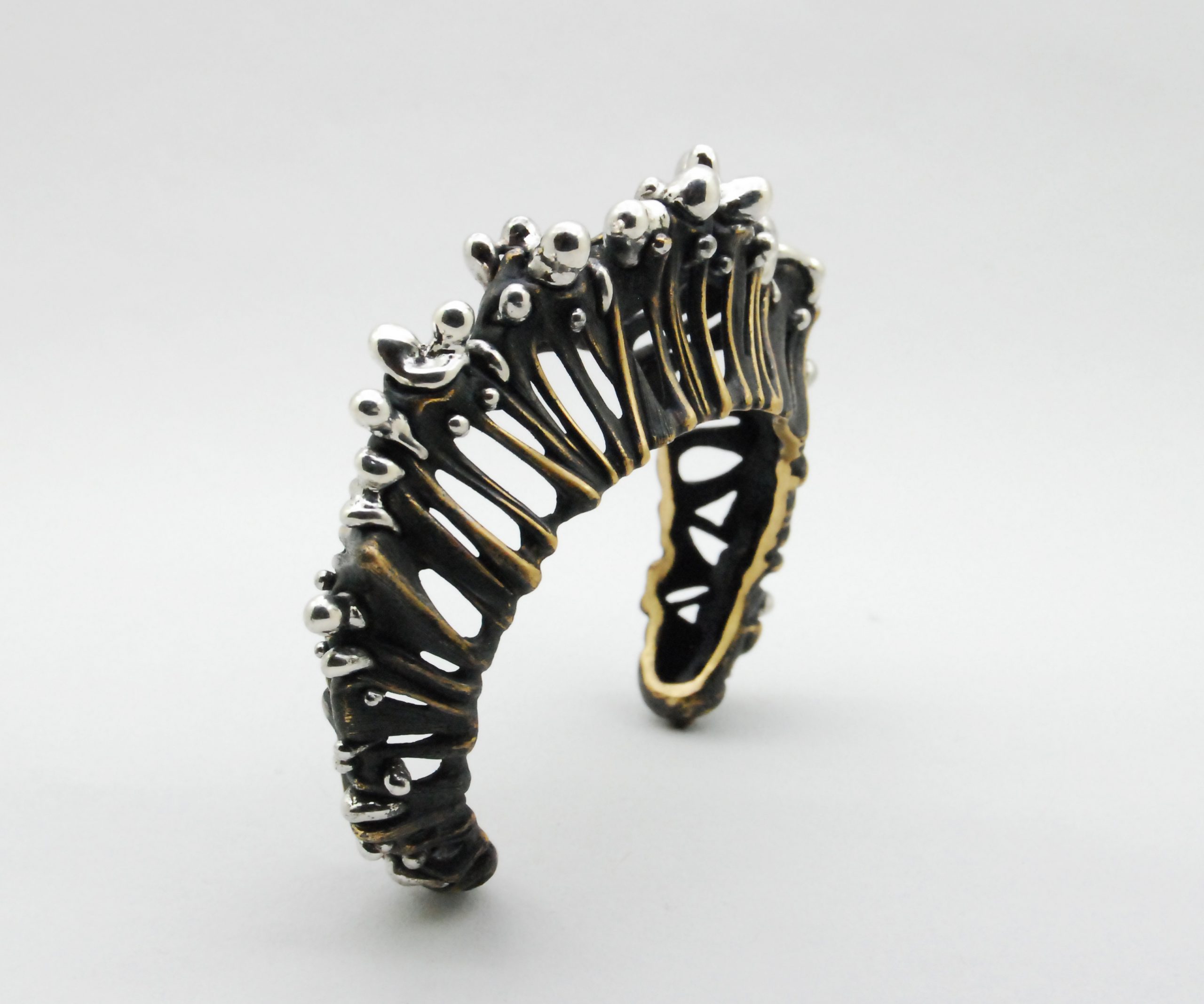 Glauco Cambi is a master goldsmith. Since 1994 he has been creating jewels in his workshop located in Rome, in the Borgo district. His production stands out for the unconventional use of metals and the expressiveness and plasticity of shapes. His research focuses on the processing of surfaces, oxidation and chromatic contrast among different materials, as well as on the implementation of unconventional stones, thus combining traditional goldsmith techniques and experimentation. In his atelier he also creates sculptures and interior design complements: his jewels, specifically the rings, are characterized by a strong sculptural component. His creative vision is inspired by the relationship between figure and landscape in plastic arts, suggesting a use of jewelry intimately linked to the person who wears it.