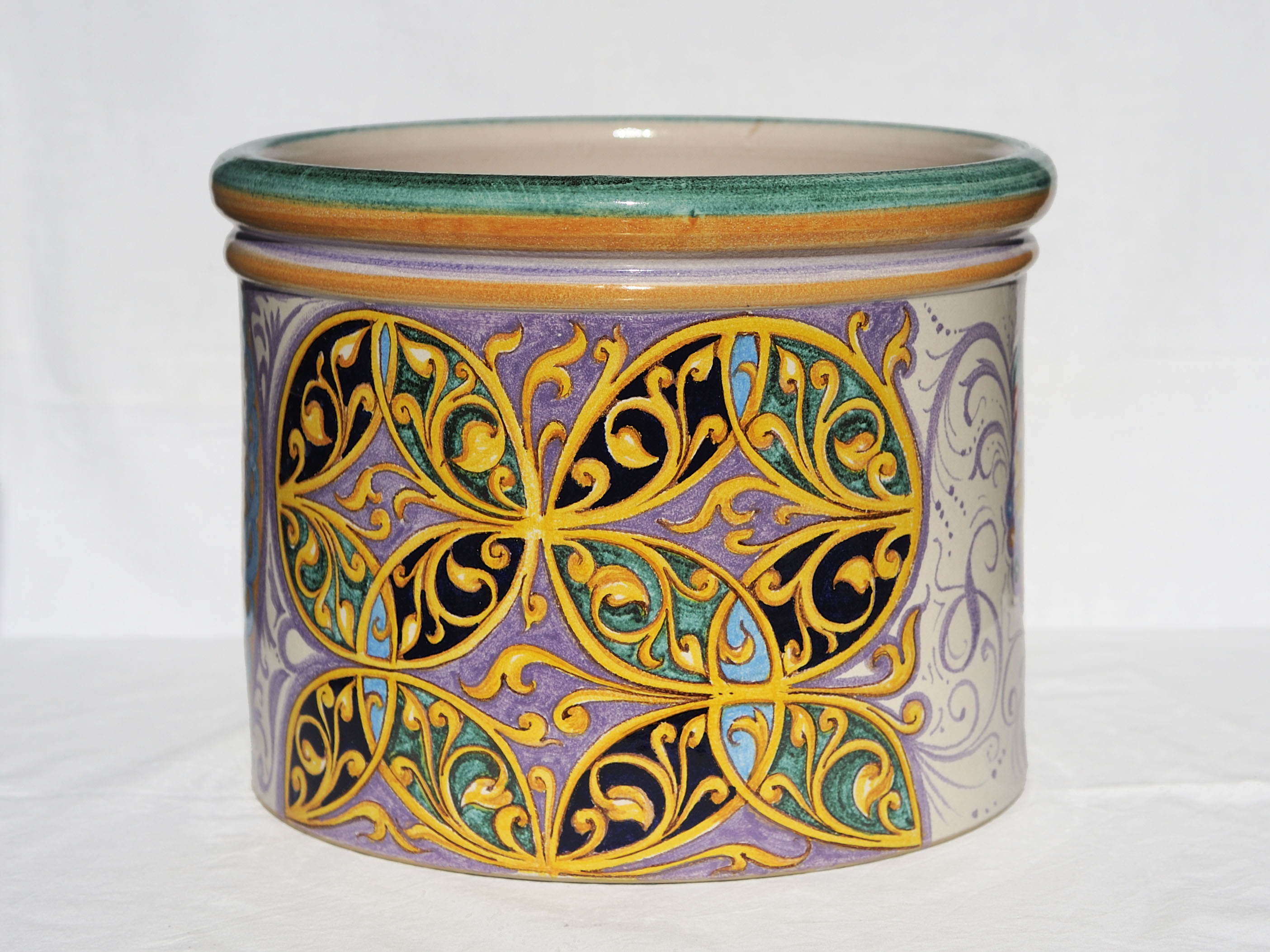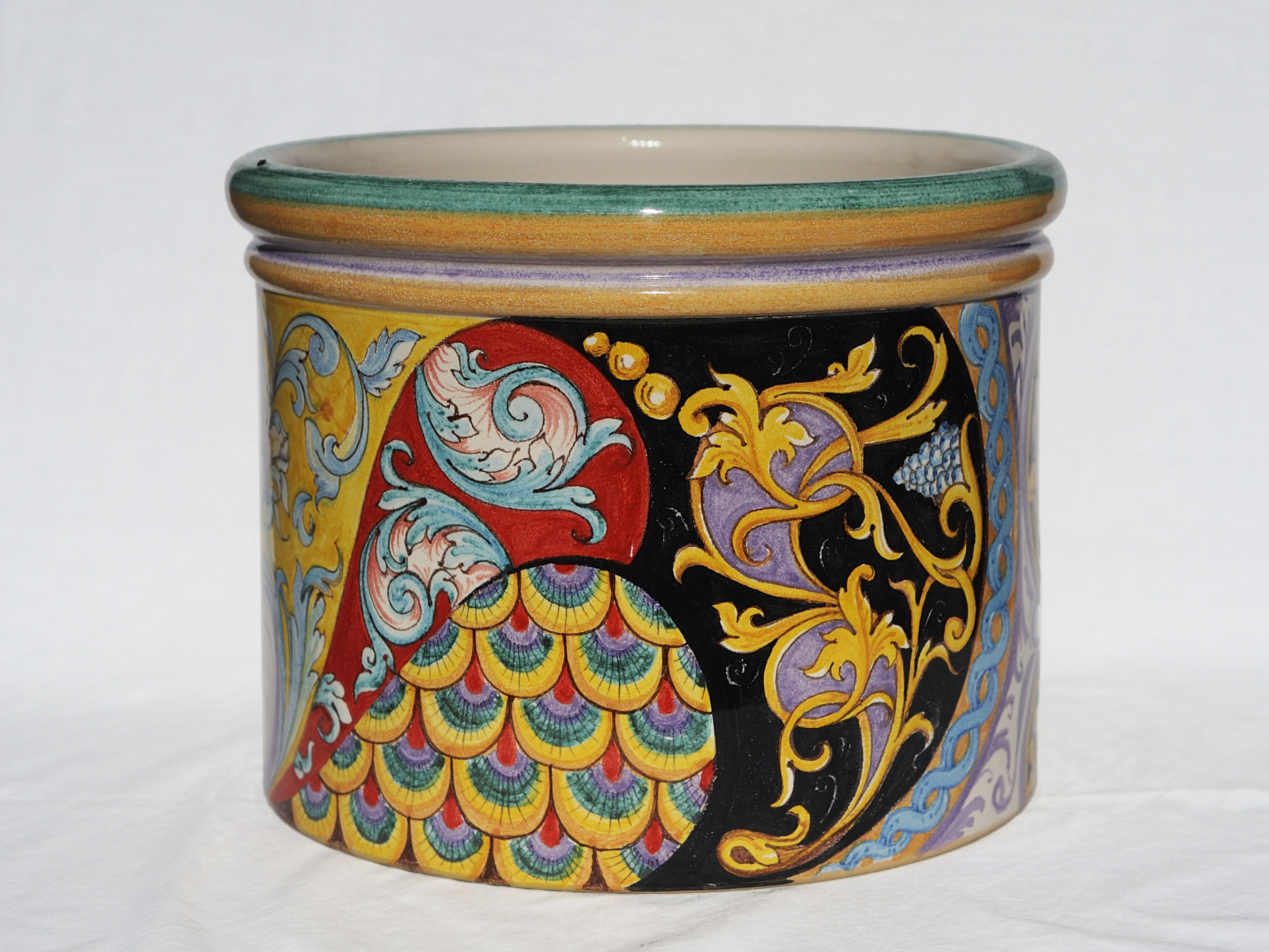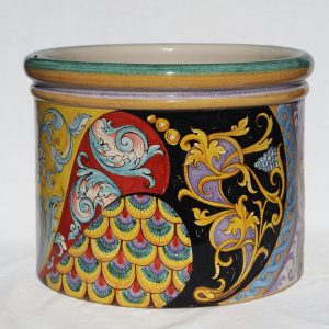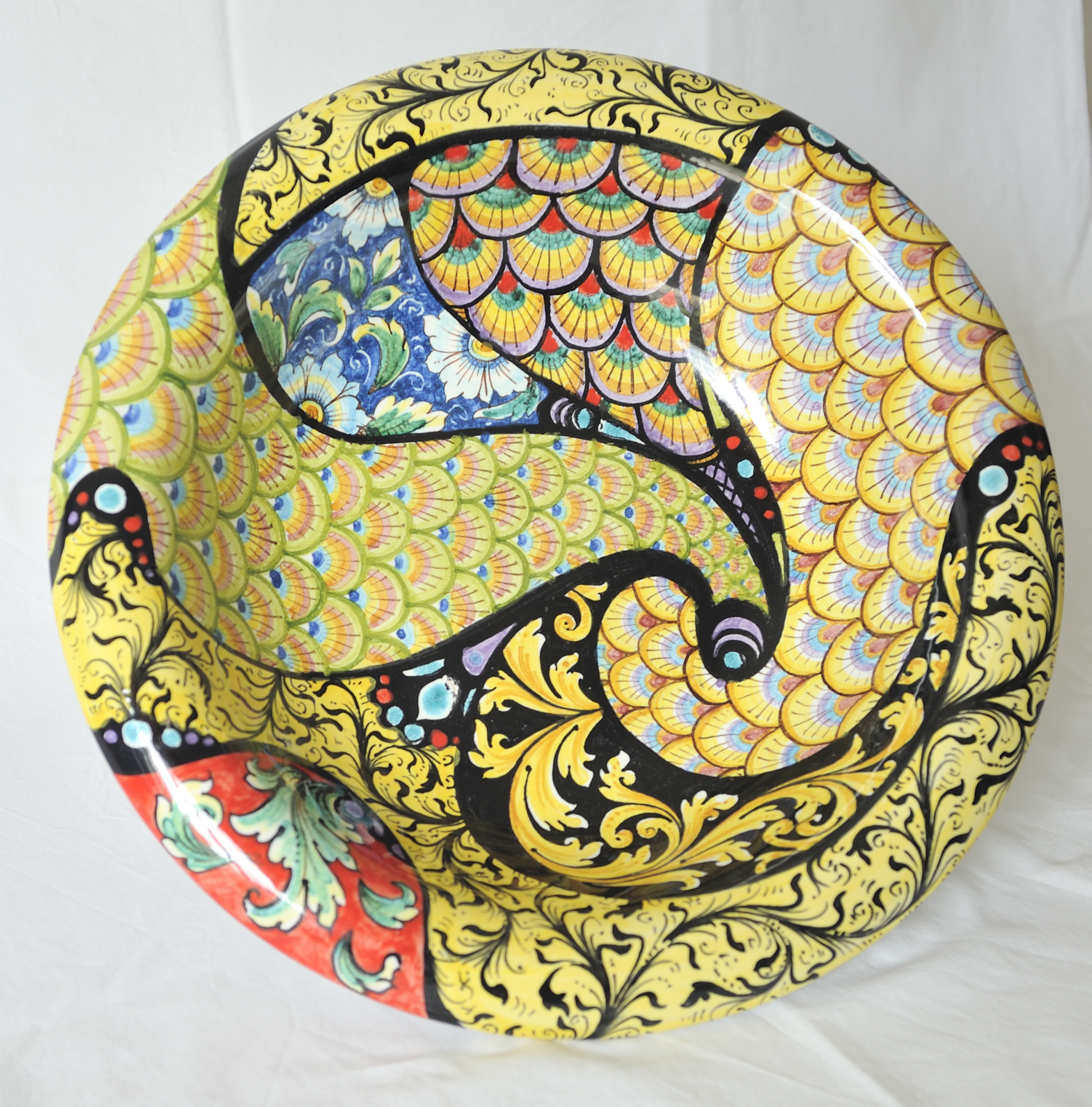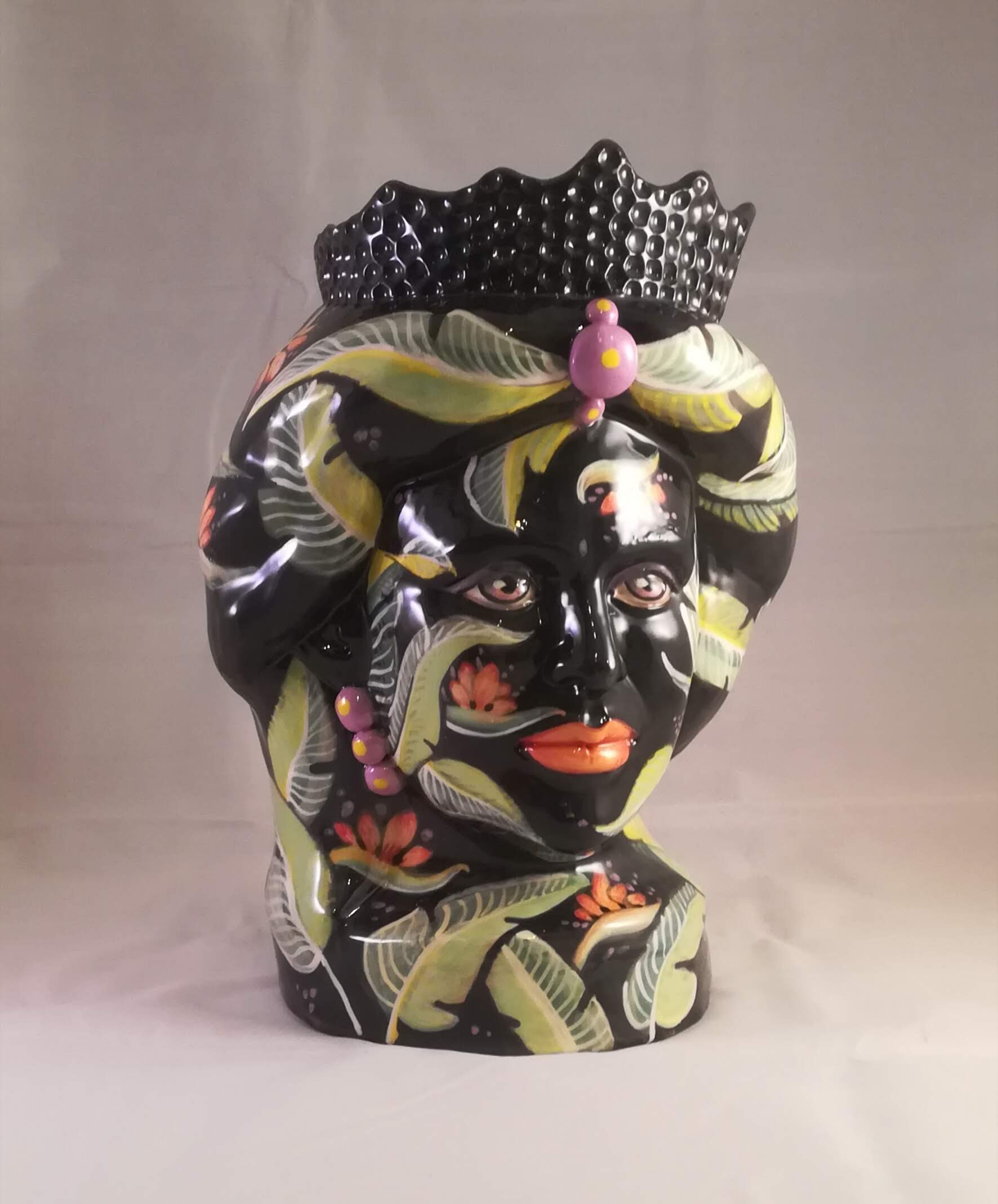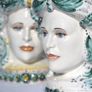 Codice dell’Arte is an association and ceramics workshop founded by Gaetano Patrizio Sbriglione, a master ceramicist from Caltagirone. The artist has a vast artistic experience, ranging from music and painting to stage design and ceramics. He took his first steps in working clay in his hometown, taking his inspiration from the forms of nature and decorative motifs of Sicilian tradition and in particular, those of Caltagirone that he has masterfully innovated in a contemporary key. Since 2007 he lives and works in Rome and gives courses in ceramics while producing decorated furnishing elements and surprising unglazed or glazed sculptures primarily featuring masks or Moorish heads in traditional or contemporary styles.
