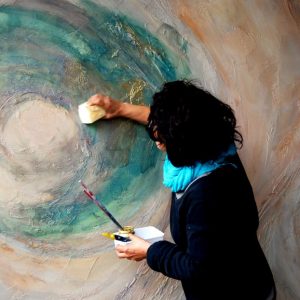 Lidia Scalzo, Rome-based artist and designer with over 30 years of experience, alongside her sister Rosaria, decorates the most beautiful homes of the Capital. In their workshop, located in Vetralla, they bring emotions to life through their professional expertise and constant research, turning craftsmanship into art and design. Employing ancient techniques and contemporary materials, they are able to create artefacts, design objects, unique and one-of-a-kind pieces. Wood, stones, resins, fabrics, paper, books and colours of any kind are combined in an actual “coordinated chaos”, reminding us how everything is indispensable and at the same time mutable.