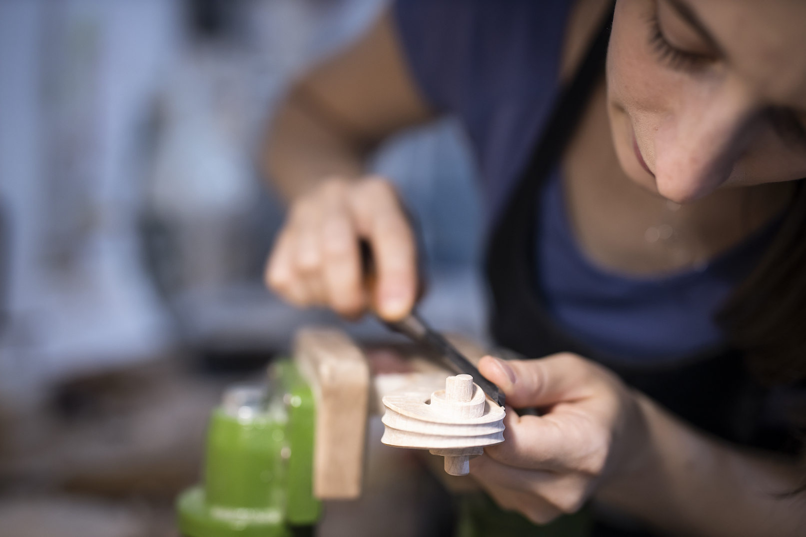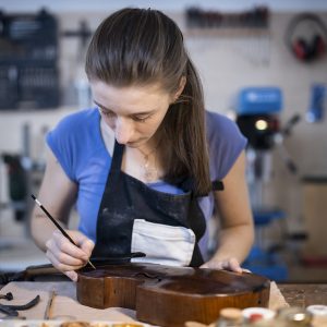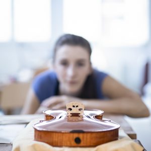 Ilaria Cazzaniga is a young luthier who graduated from the “Civica Scuola di Liuteria di Milano” (City of Milan’s Civic school of Lutherie), specialized in the restoration of string instruments. Working with wood to give way to creativity and bring life to music is her greatest passion. Her Curiosity led her to delve into scientific research in the field of musical instruments, thus earning a degree in Physics and one in Cultural Heritage Conservation and Diagnostics. Today she builds and restores string instruments in her workshop overlooking a courtyard in old Milan, which she shares with other artisans, and she also carries on her collaboration with Carlo Chiesa, which began thanks to Fondazione Cologni’s project “A School, a Job. Training to excellence”. Since 2020, she teaches Chemistry and material sciences for lutherie at the Civica Scuola di Liuteria, while also teaching string instruments building at the “Accademia di Liuteria Piemontese” (Piedmont’s Lutherie Academy).
