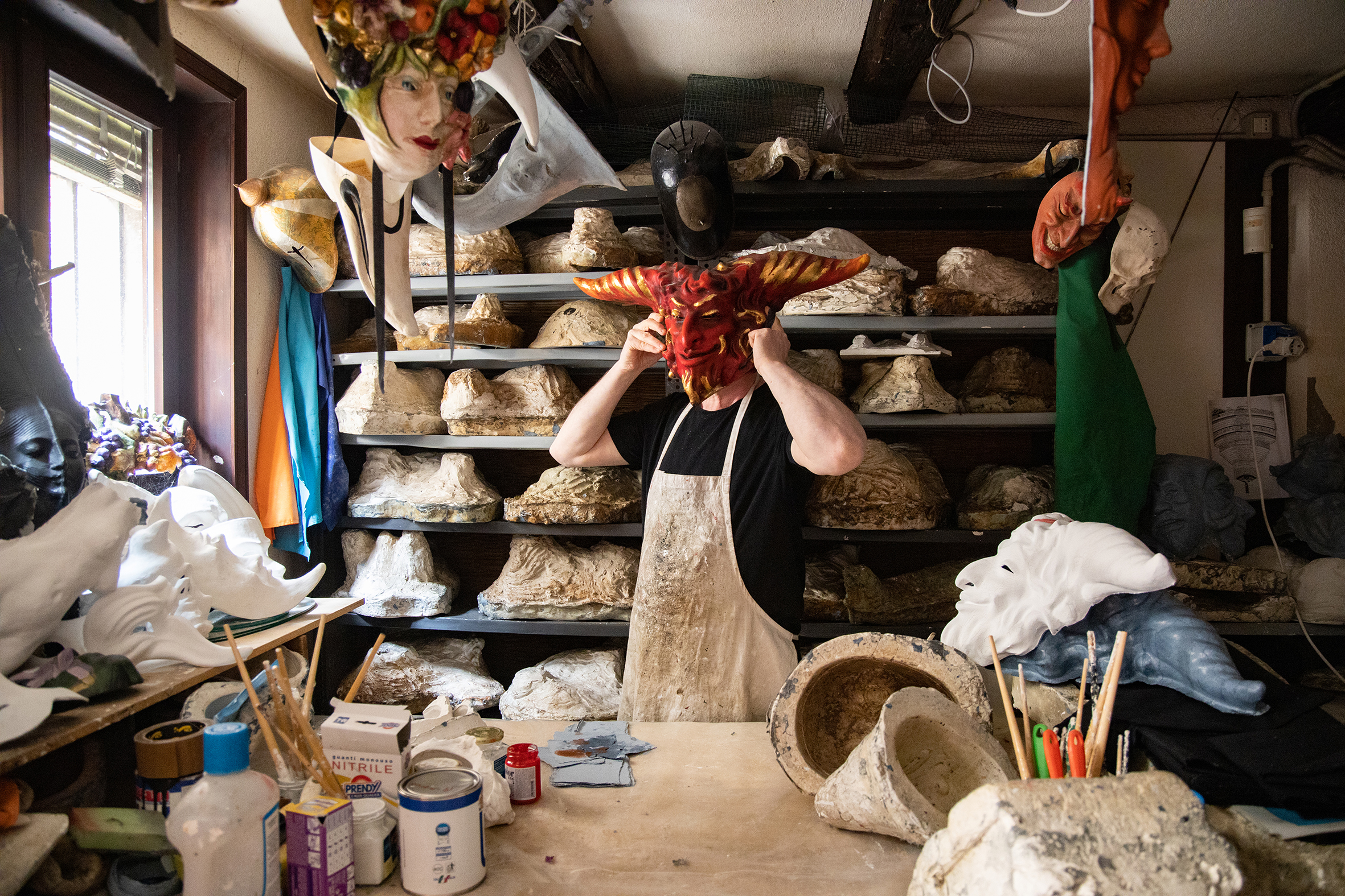 Sergio and Massimo Boldrin are brothers. They run a little workshop in Venice, next to the Rialto Bridge, where beautiful masks have been created since 1984.